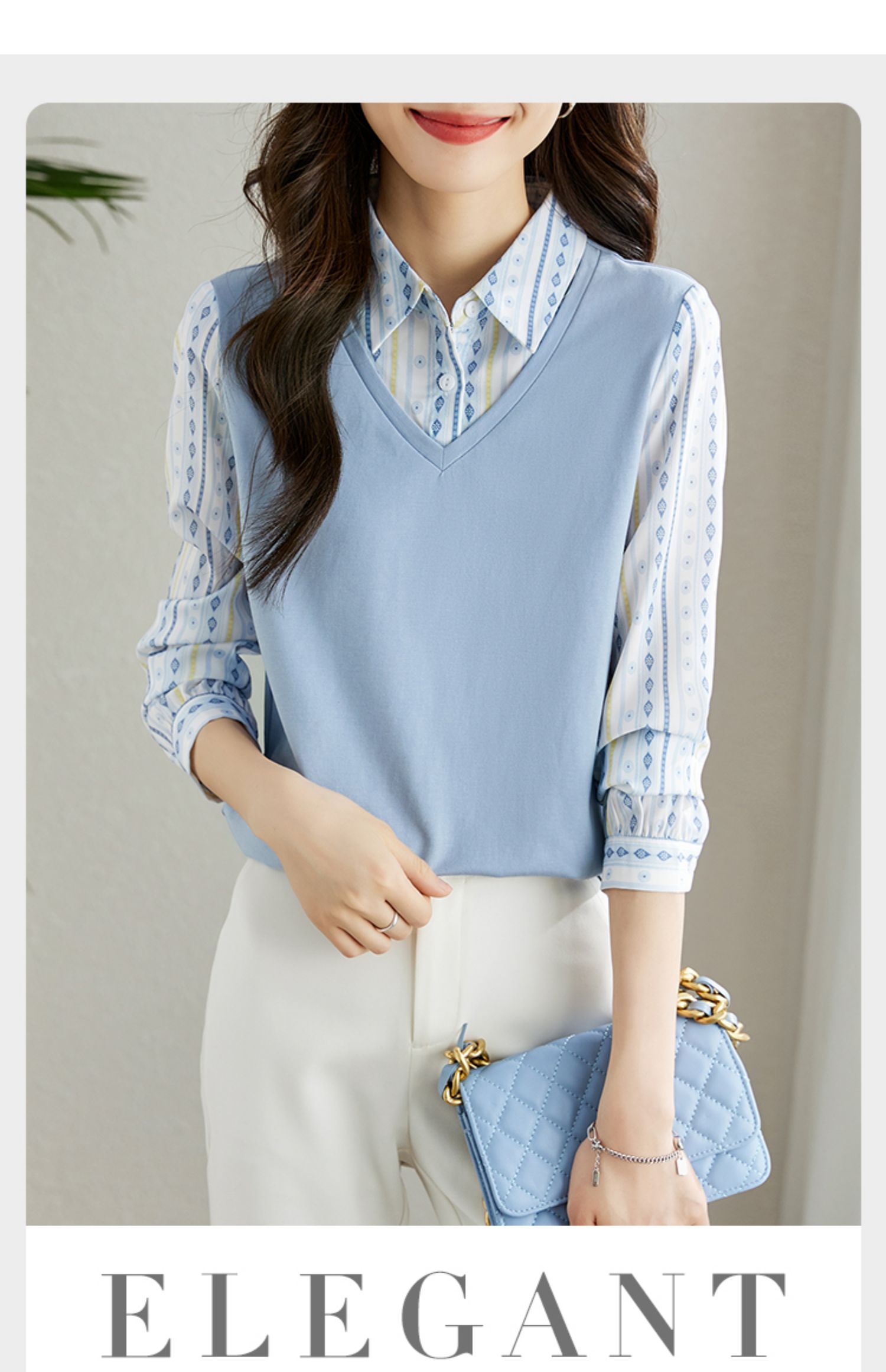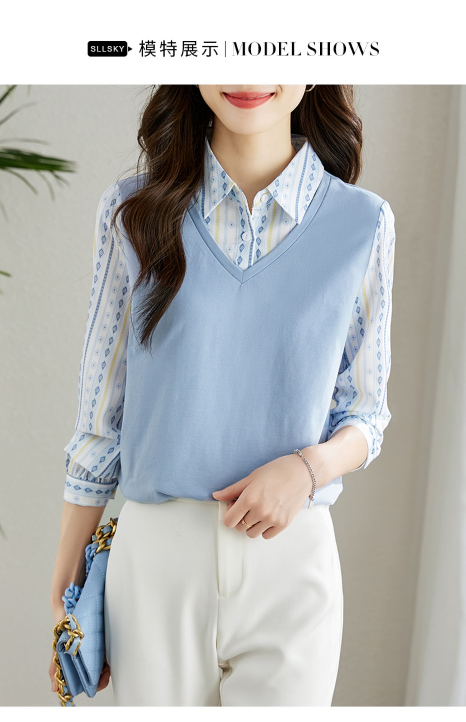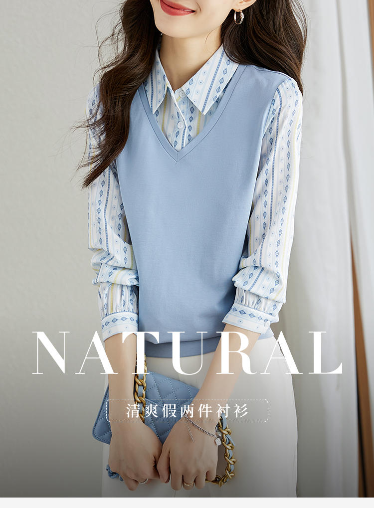 【69元福袋,不支持退换】熙世界秋装新款文艺气质时尚别致假两件衬衫上衣女设计感小众