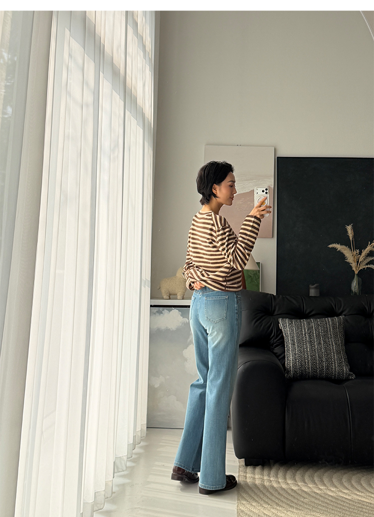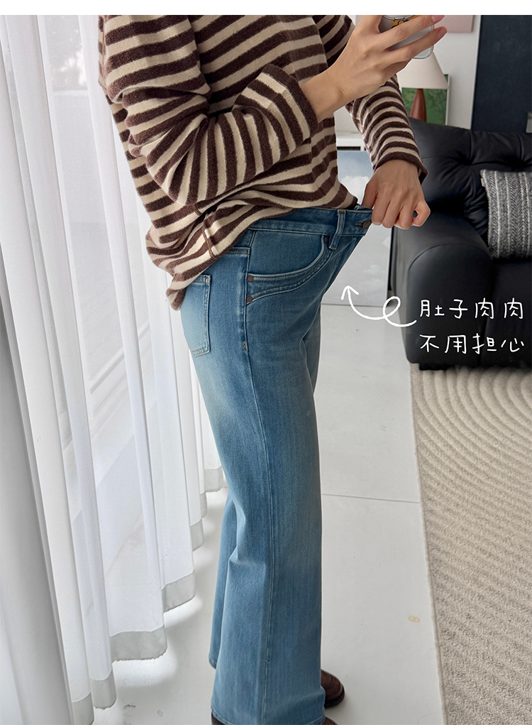 定制莱卡四面弹 气质显瘦高腰微喇牛仔裤
