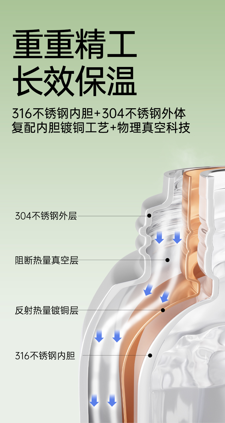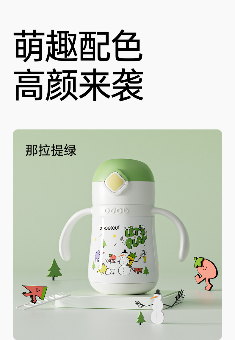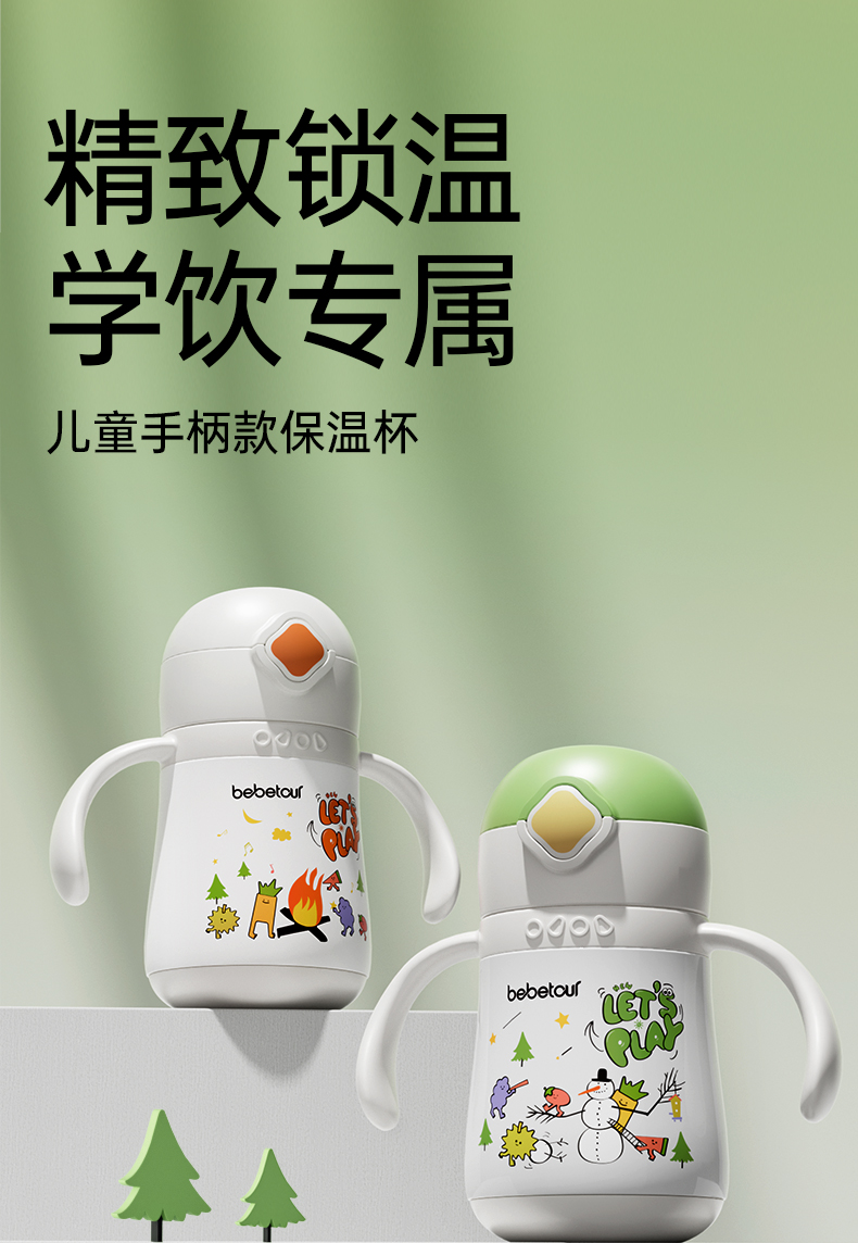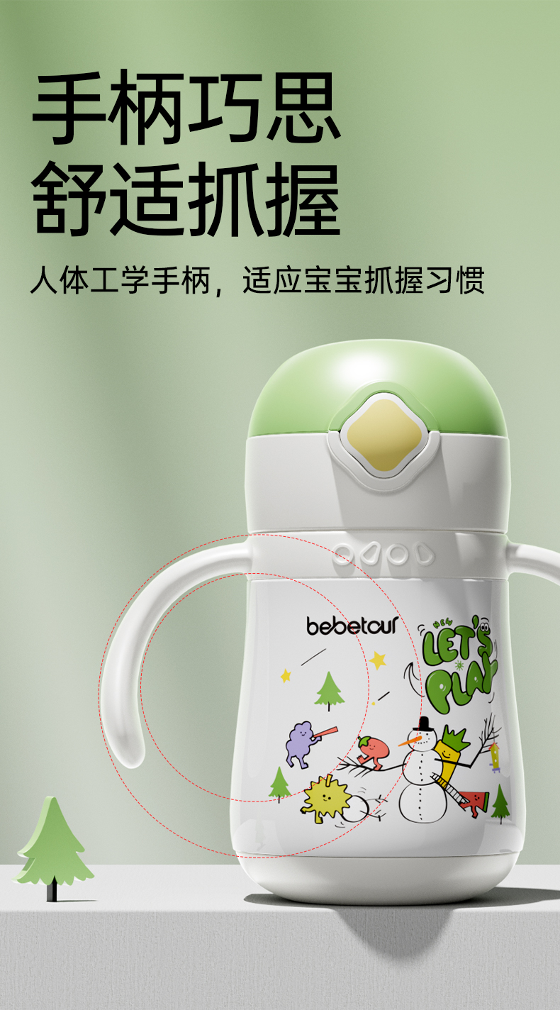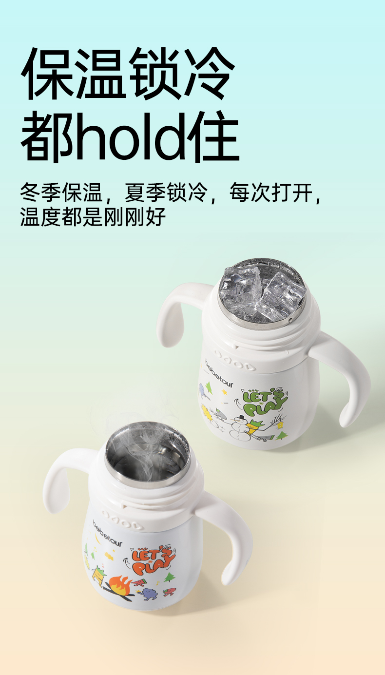 bebetour婴幼儿保温杯宝宝水杯一岁保温奶瓶儿童吸管杯学饮小月龄手柄款