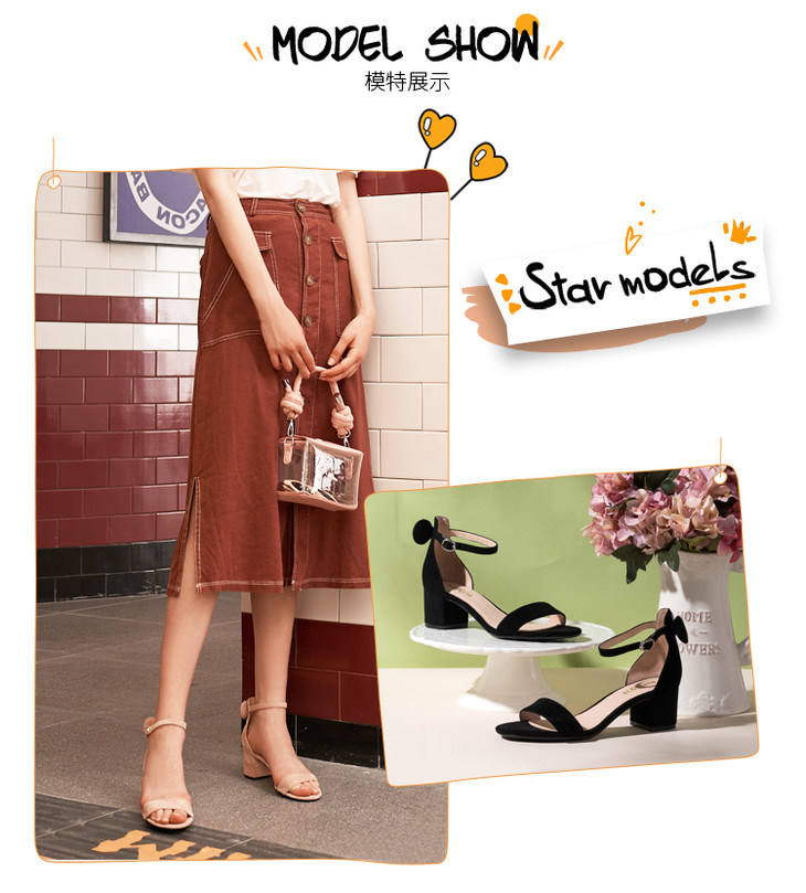 Safiya索菲娅一字带仙女粗跟高跟凉鞋2019夏季SF92115061