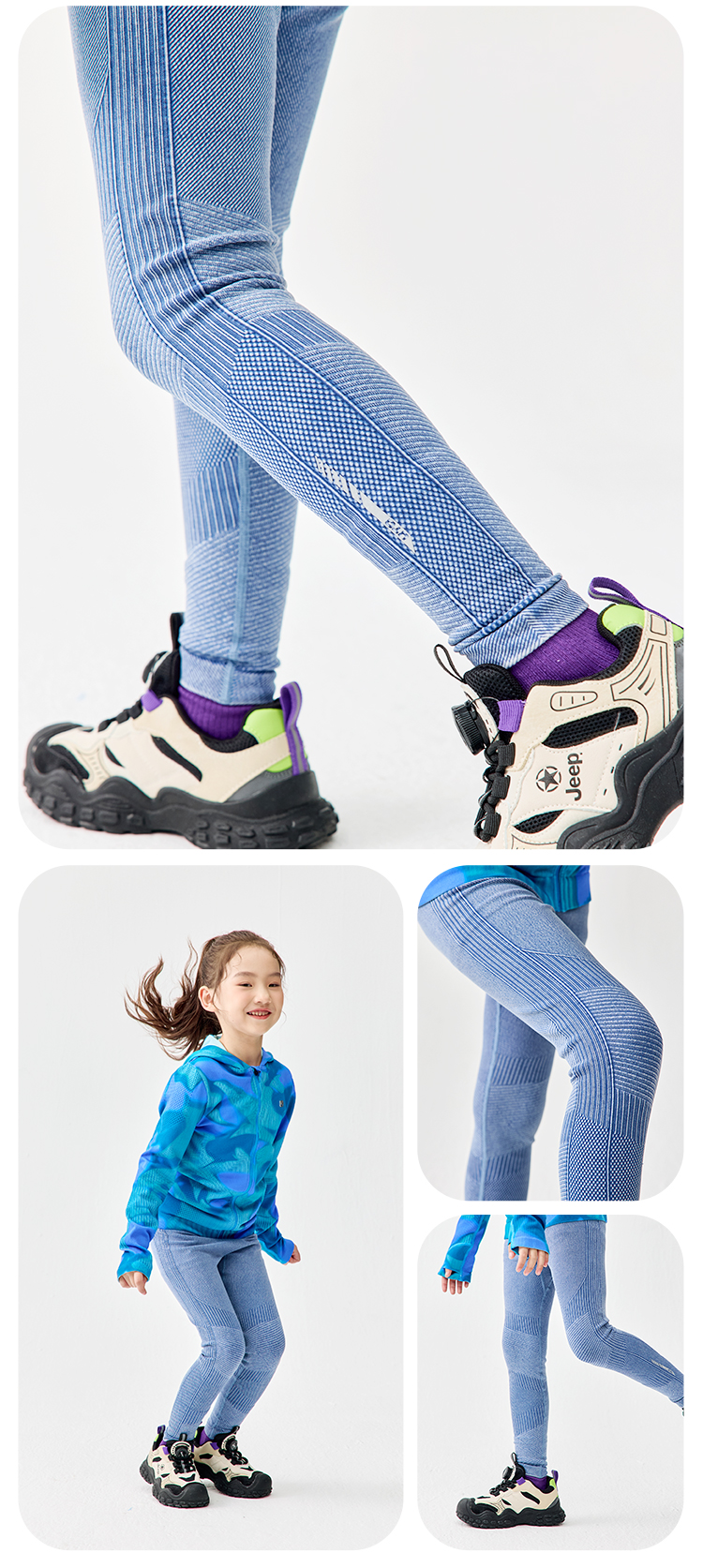 UTO/悠途户外运动渐变款儿童保暖套装秋冬季紧身圆领弹力速干长袖