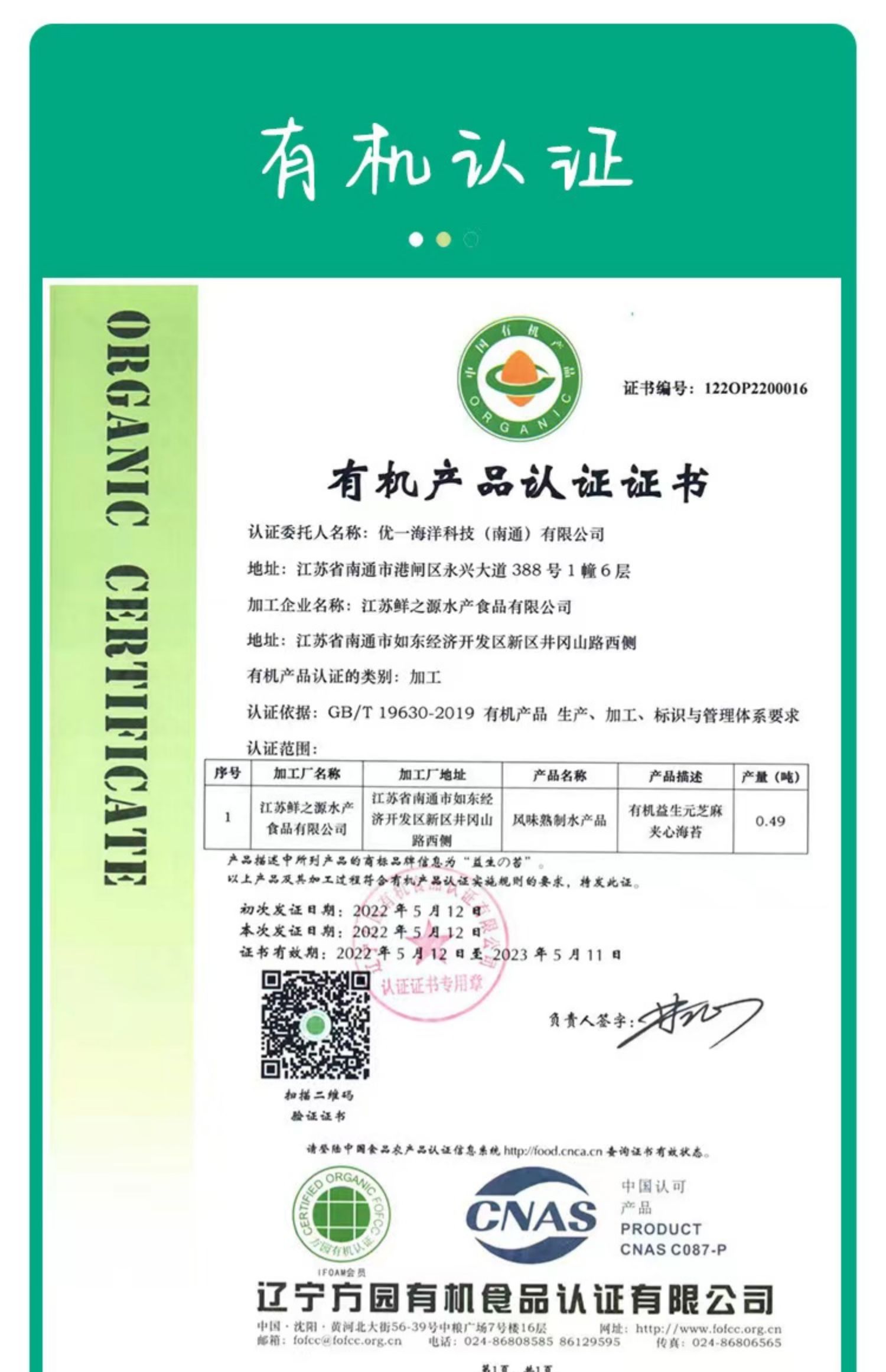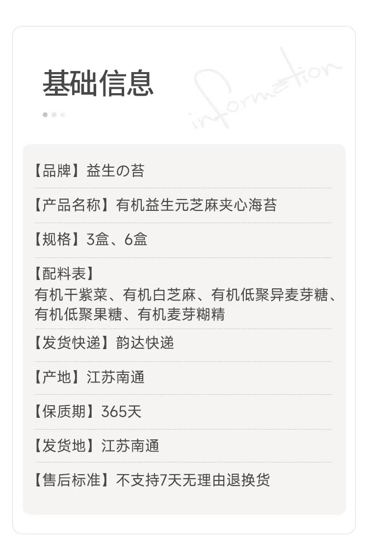 有机益生元芝麻夹心海苔儿童孕妇即食香脆紫菜薄片休闲食品小零食