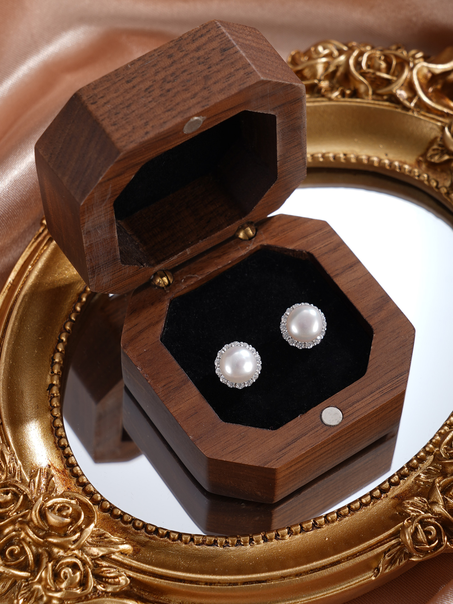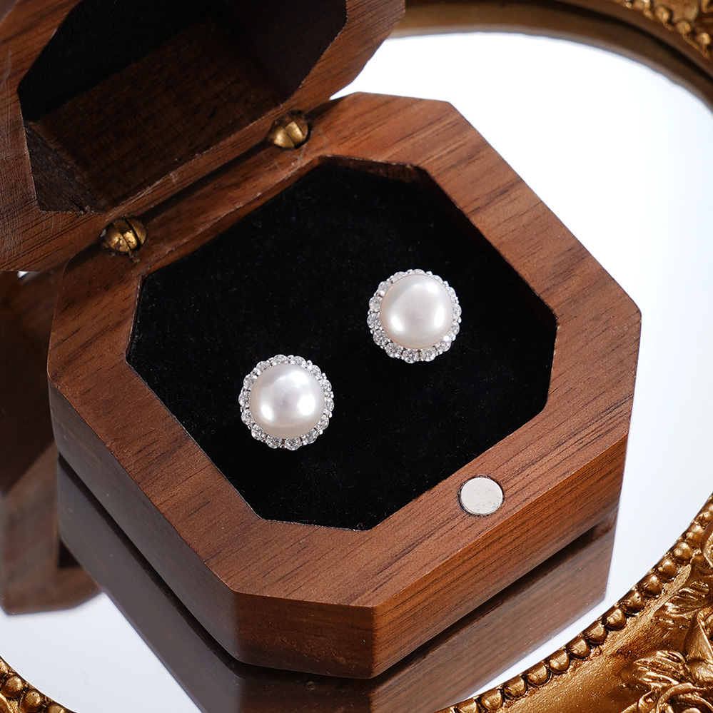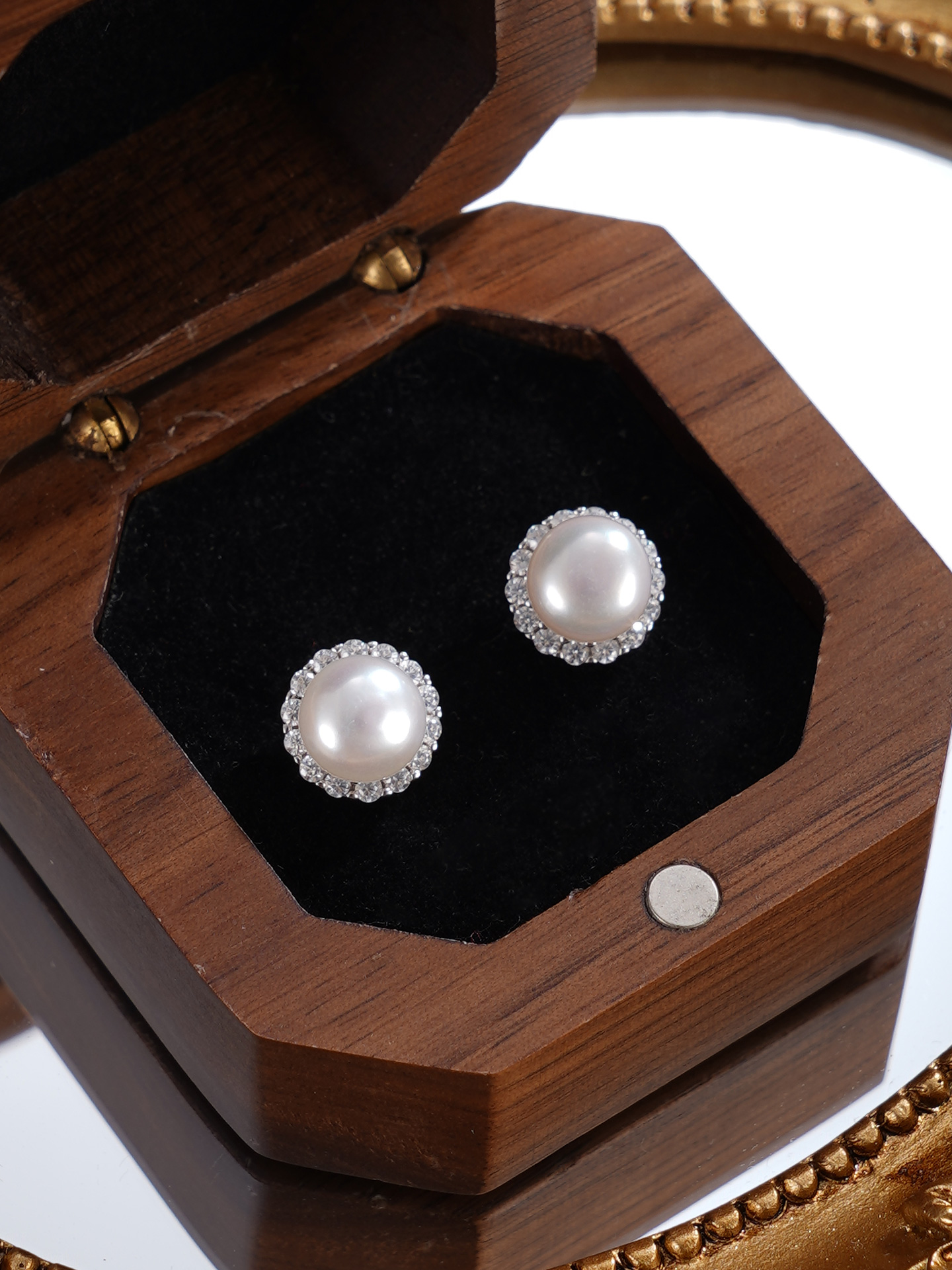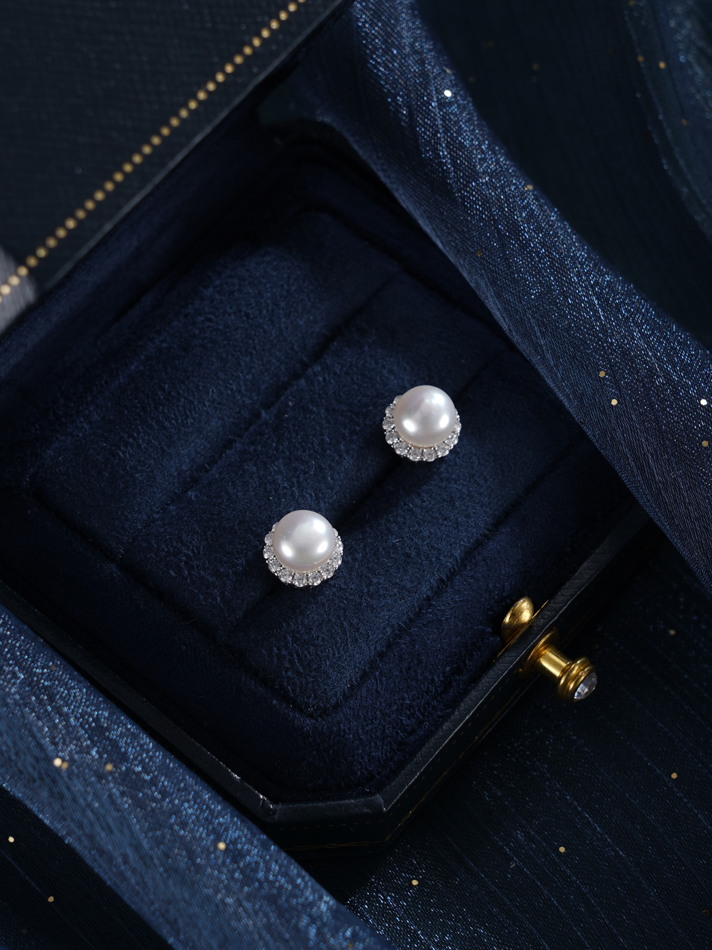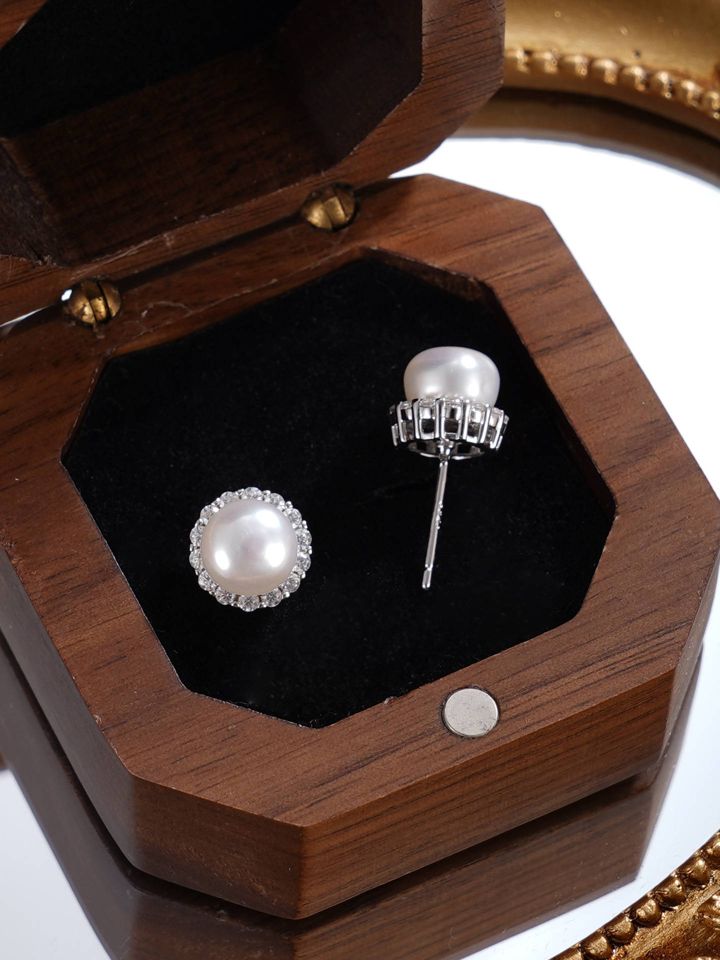 子佩集【花香梦萦】银S925珍珠惜王妃耳钉【SPE0410013】7mm珠太阳花2601