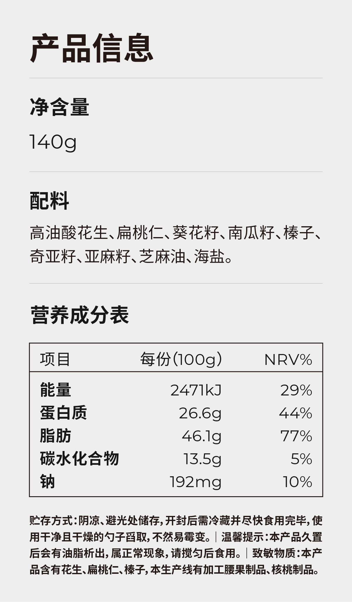 有乐岛 研磨混合坚果种子酱140g 8种坚果种子 颗粒口感丰富 香气浓郁 72小时发货