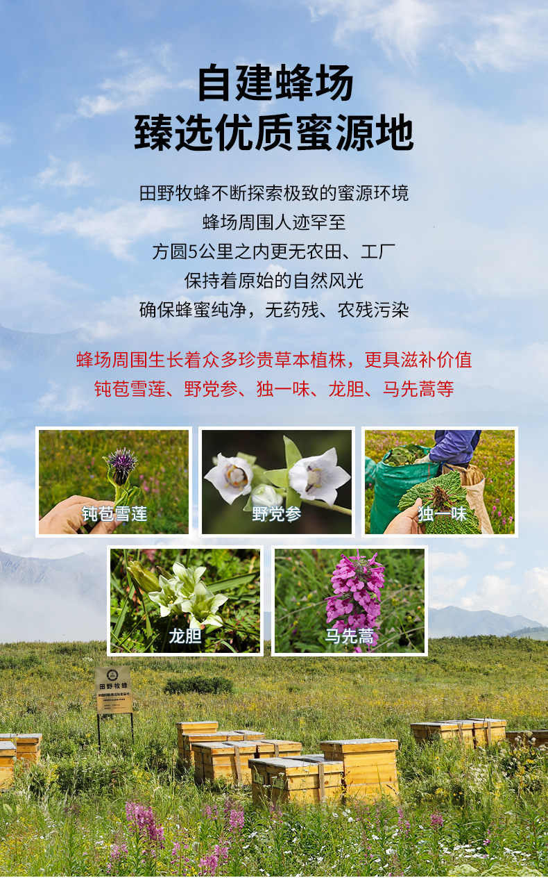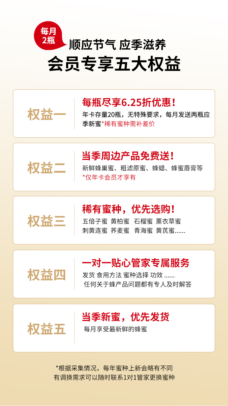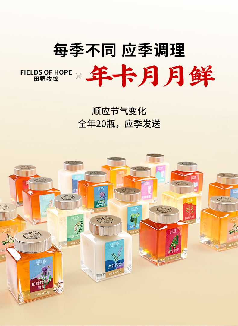 田野牧蜂【年卡蜂蜜月月鲜】全年20瓶每季不同 应季发送 优先畅享小蜜种 金奖品质