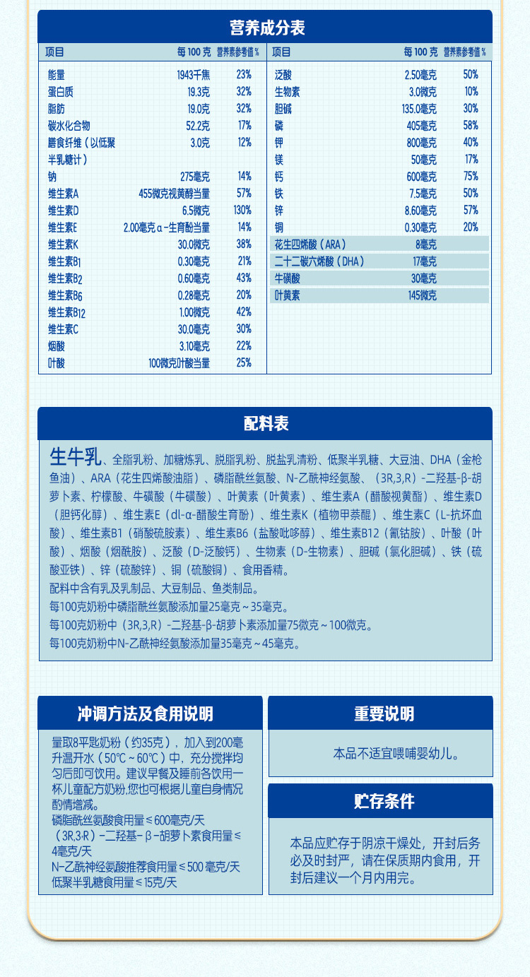 双11-君乐宝小小鲁班儿童配方奶粉800g(2罐)