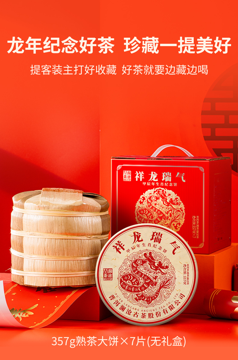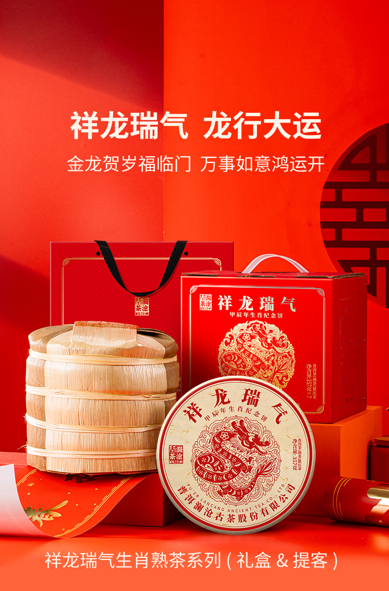 【生肖饼】澜沧古茶2024年祥龙瑞气普洱熟茶357g