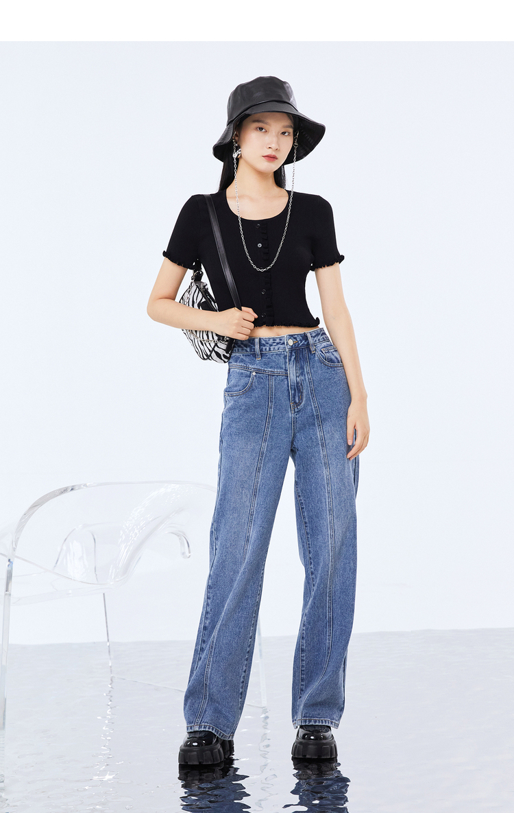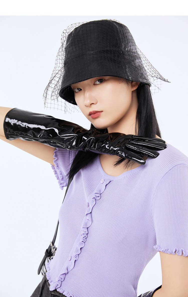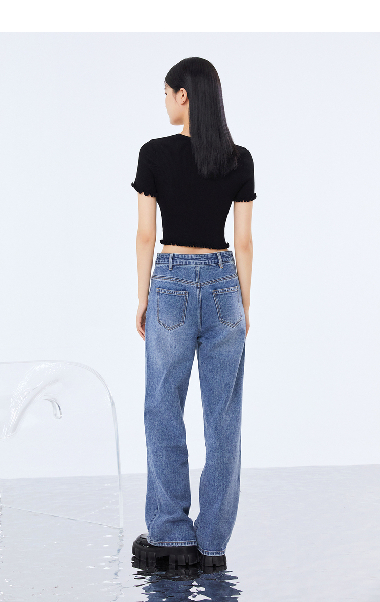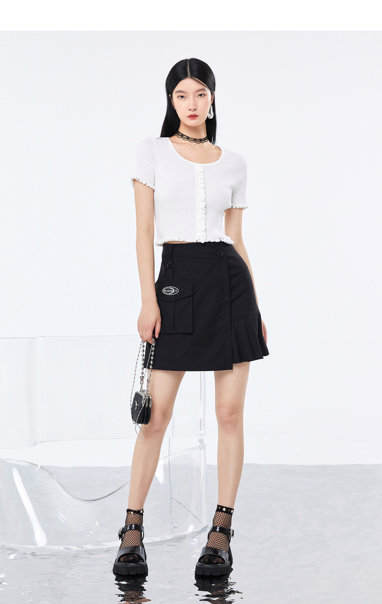 NEELLY纳俪商场同款2022秋季新款圆领针织衫女甜美木耳边短款上衣N22074A04402