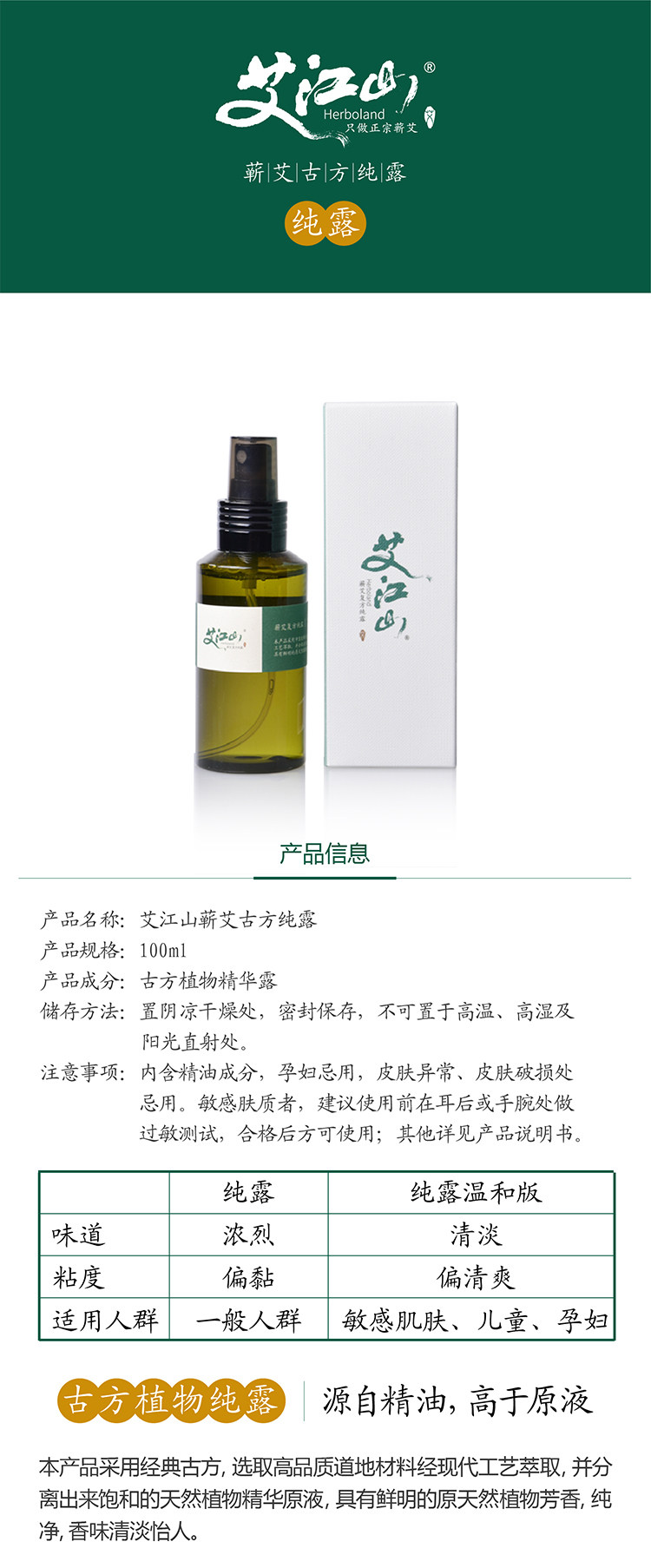艾江山 蕲艾复方纯露 100%饱和的天然植物精华原液保湿养颜
