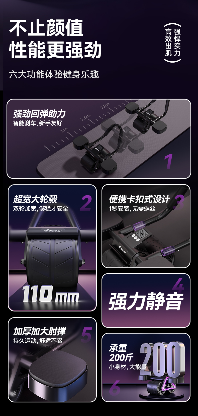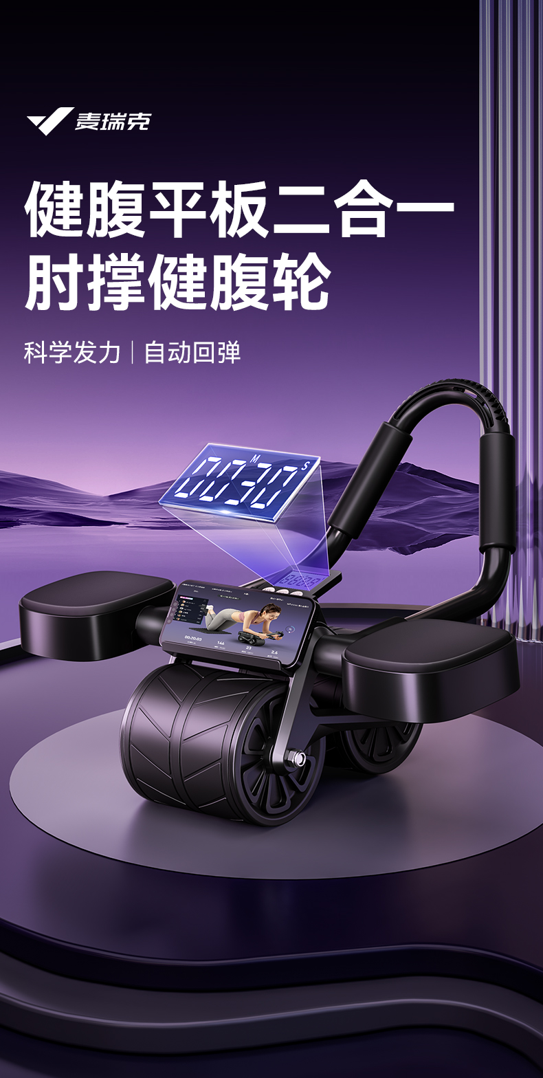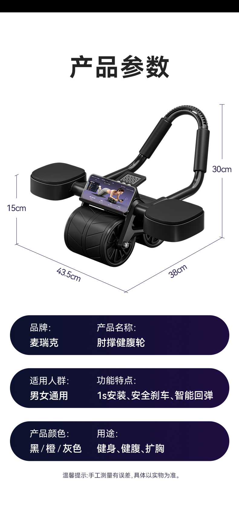麦瑞克健腹轮自动回弹卷腹肌男女瘦肚子训练家用肘撑双轮健身器材MR-2369