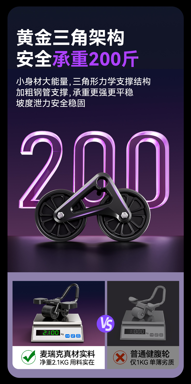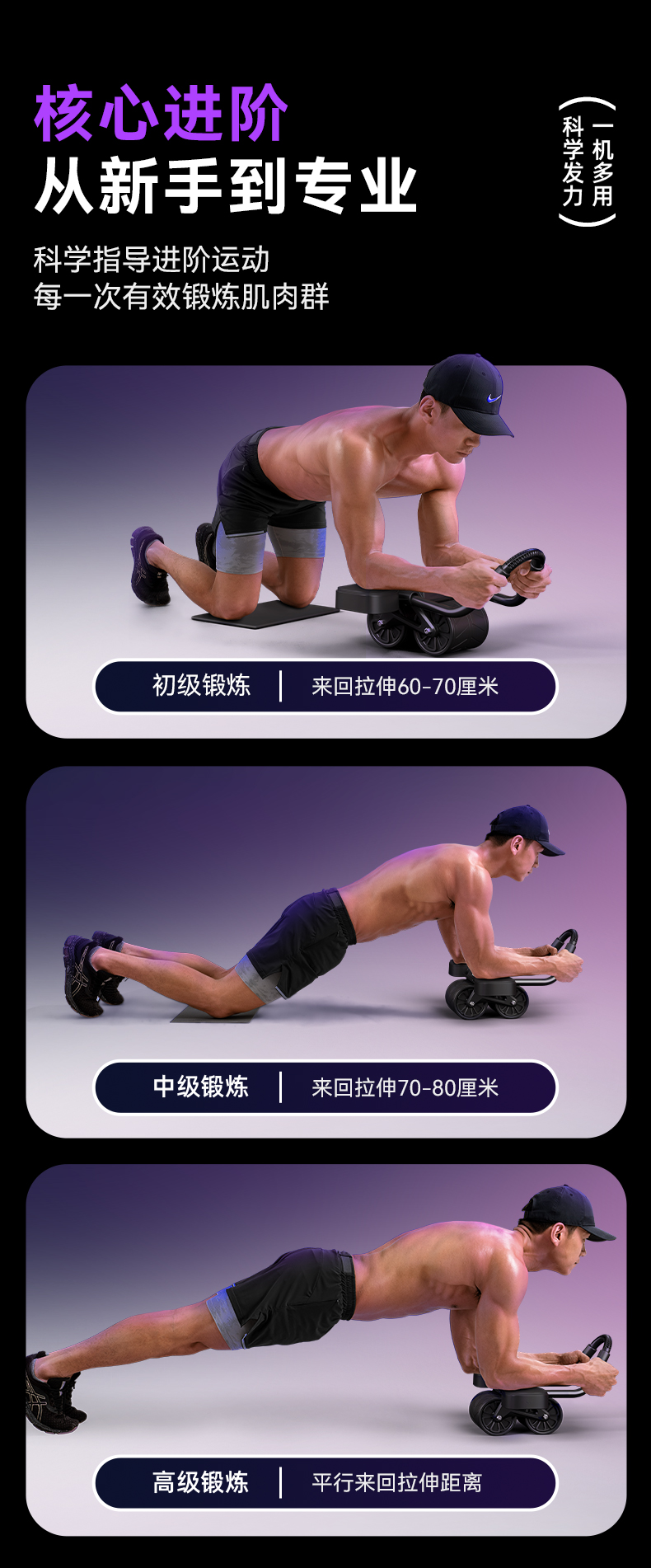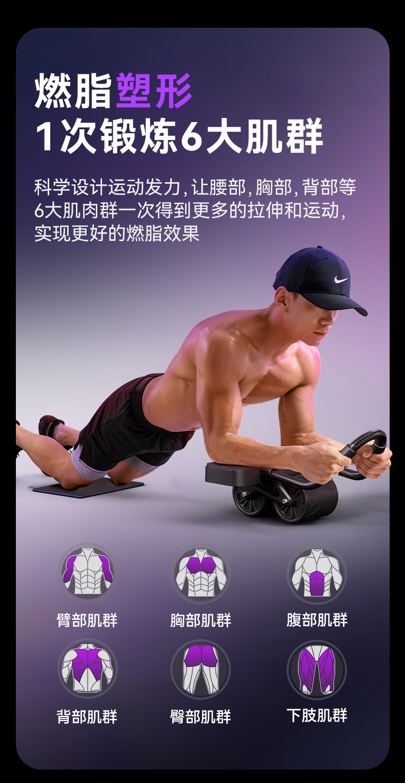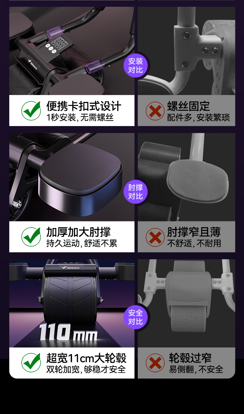 麦瑞克健腹轮自动回弹卷腹肌男女瘦肚子训练家用肘撑双轮健身器材MR-2369