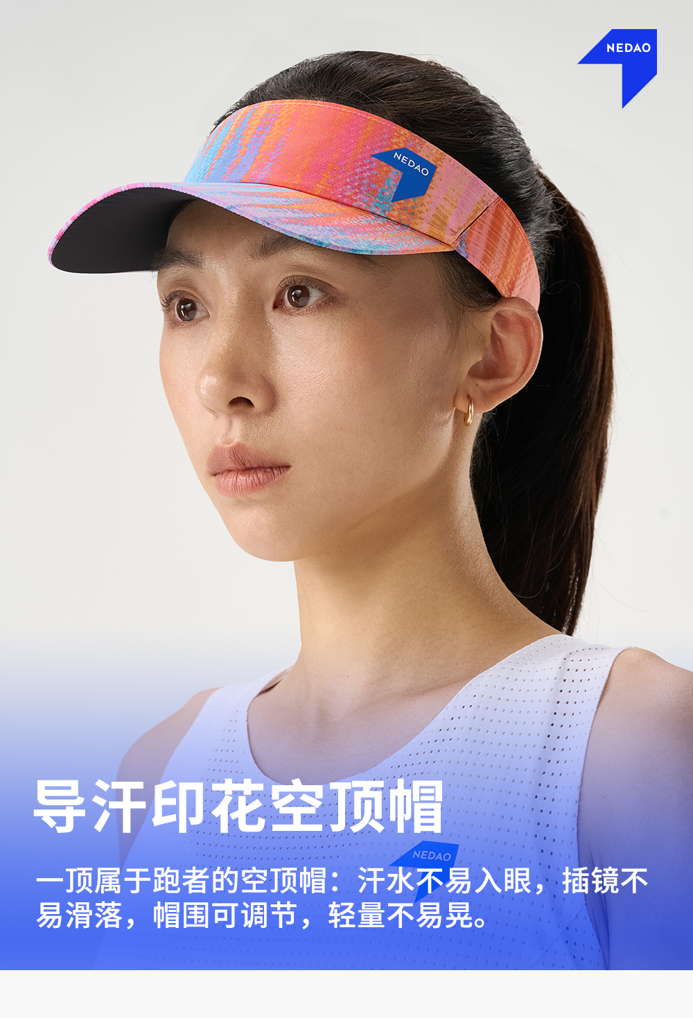 NEDAO内道轻量空顶帽夏季跑步速干调节扣户外越野马拉松跑步运动帽