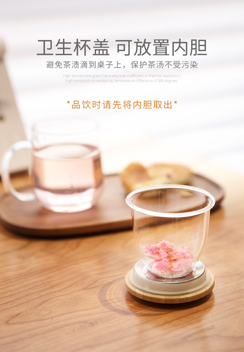 雅集玻璃杯悠觉杯400ml(竹盖款)