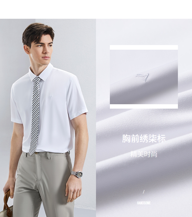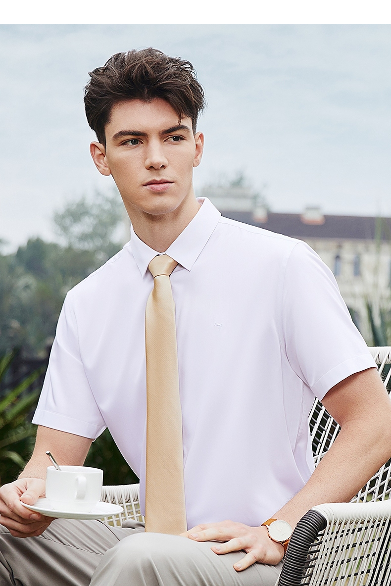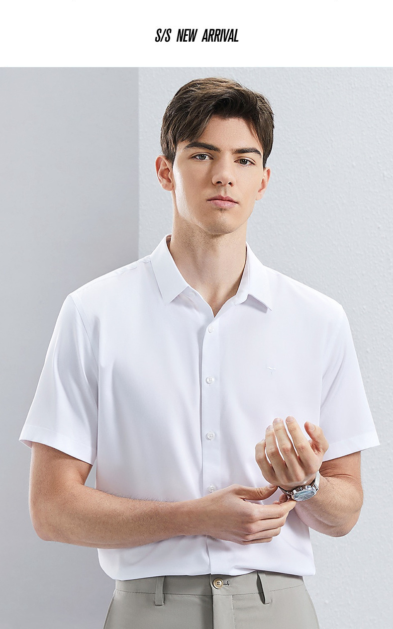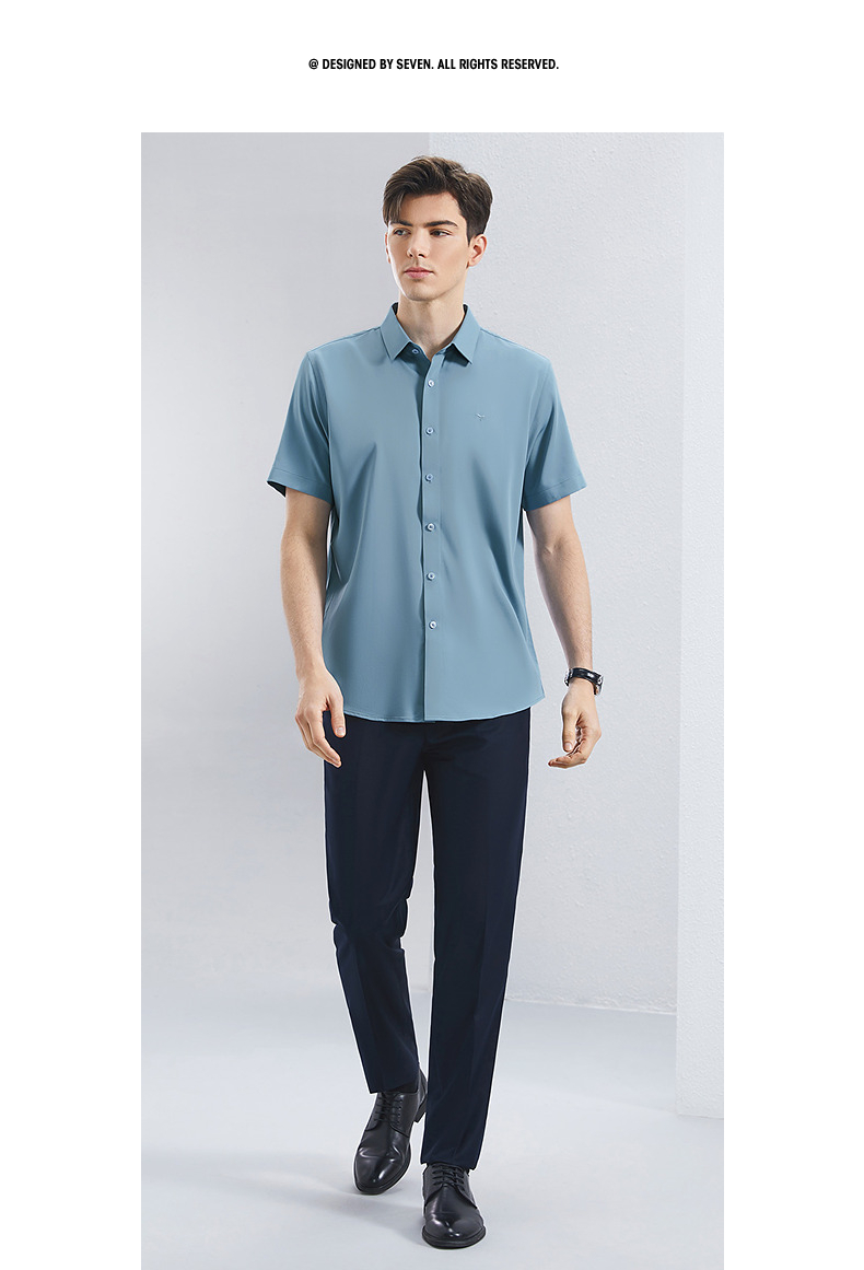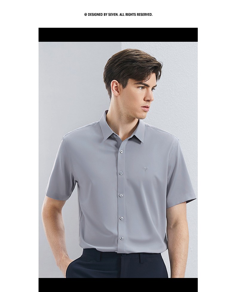 【含桑蚕丝】柒牌短袖衬衫男2024夏季新款商务休闲中青年翻领衬衣 126A70190