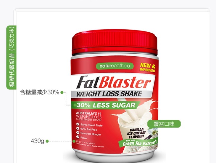 【保税仓】澳洲Fatblaster 膳食补充剂 极塑成人代餐奶昔香草味430g 商品缩略图0