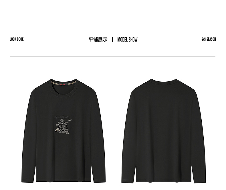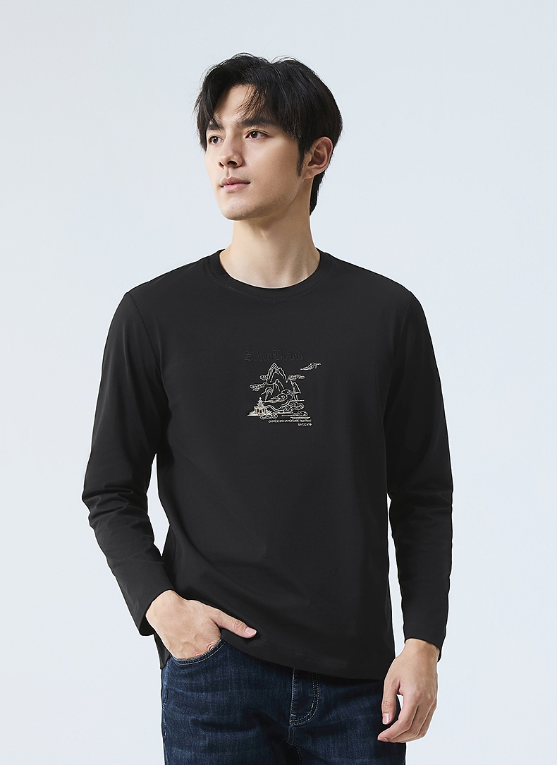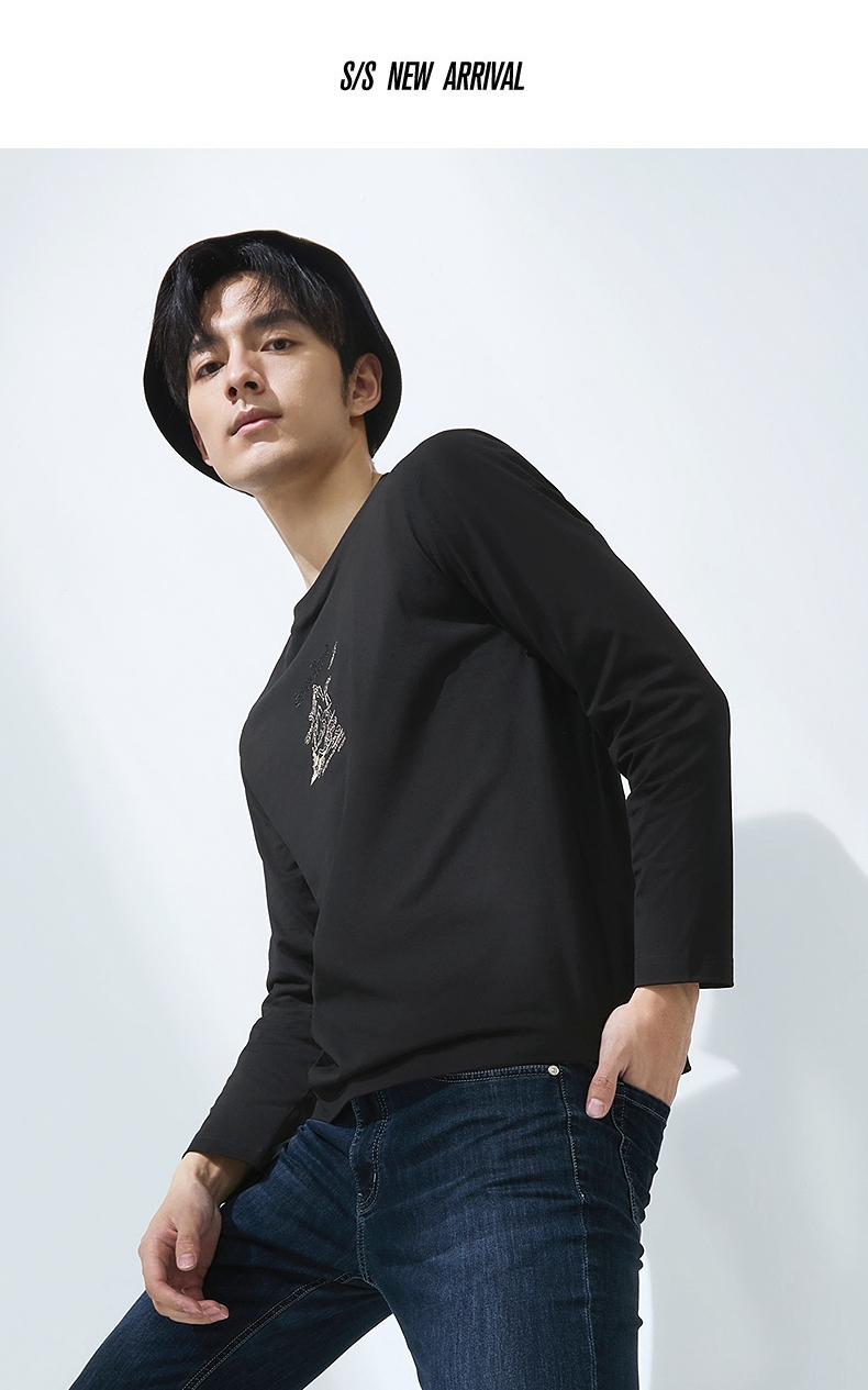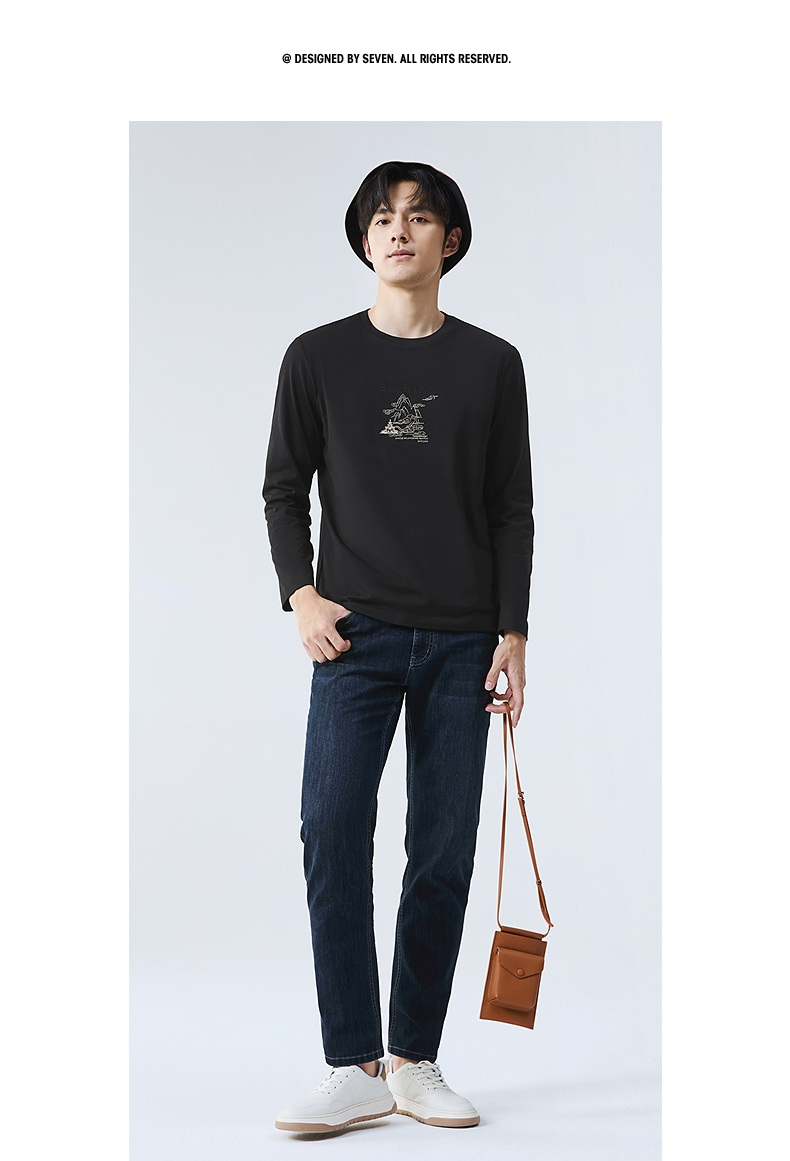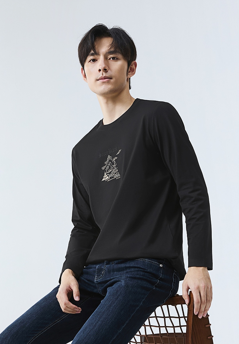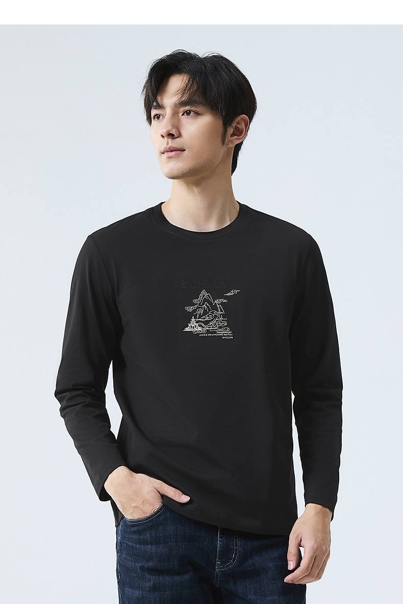 【新疆长绒棉】柒牌长袖男T恤2025春季新款休闲百搭黑色圆领上衣128T71850