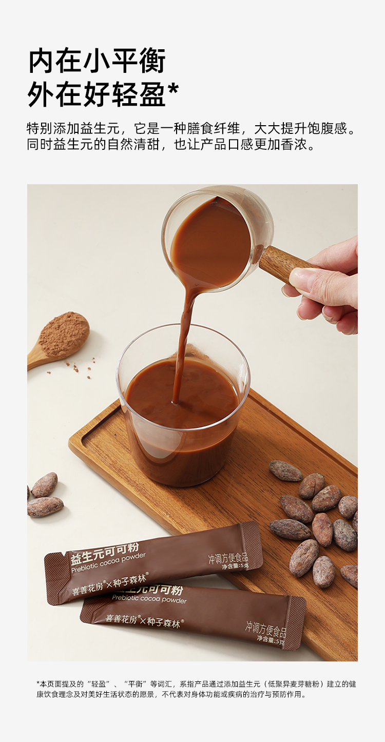 喜善花房 原生未碱化益生元可可粉5g*10条/盒
