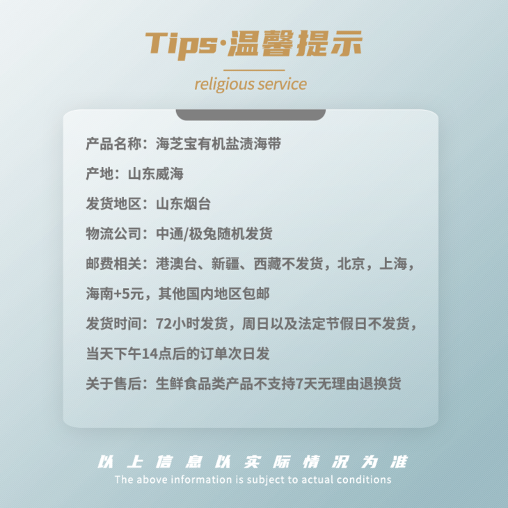 【有机认证】海芝宝有机盐渍海带 5斤家庭装 新鲜嫩薄爽口美味煮汤凉拌火锅家商用食材