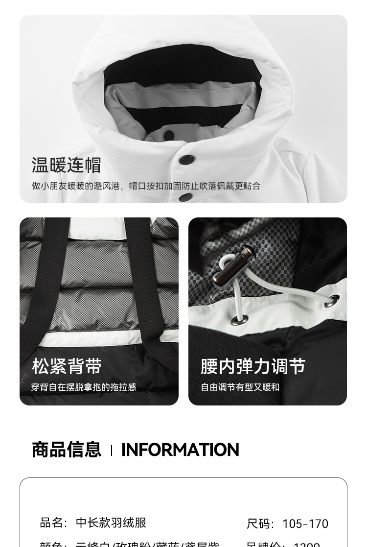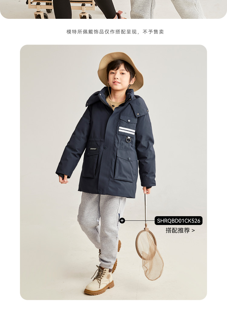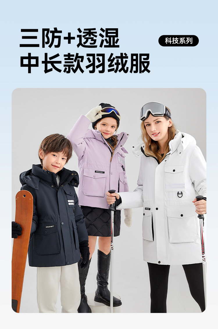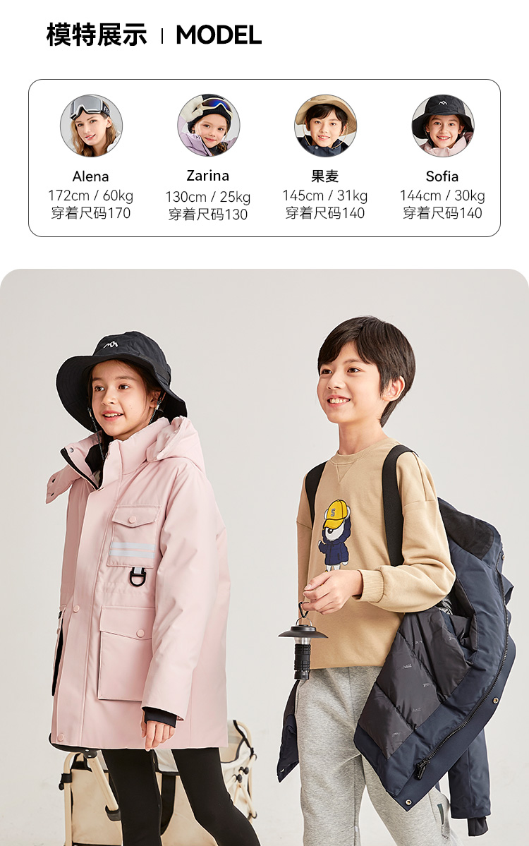 水孩儿童装冬上新男童羽绒服三防透湿女童休闲连帽中大童外套