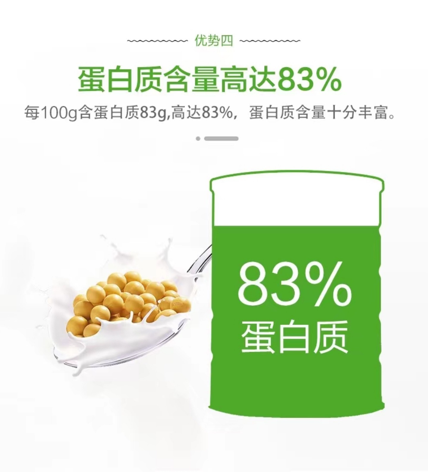 蛋白质含量高达83%(每100g含蛋白质83g)