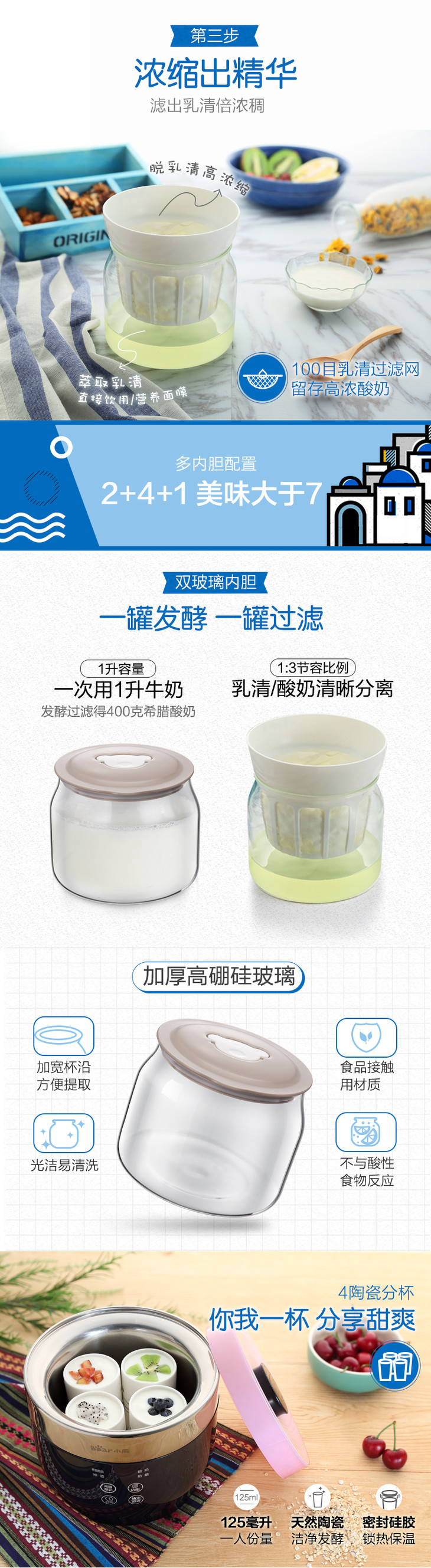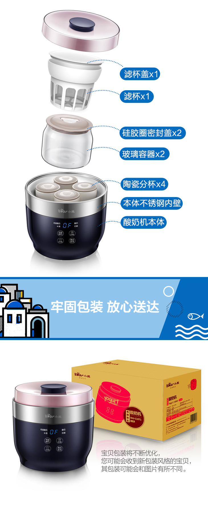 小熊(Bear) 酸奶机 家用全自动米酒机奶酪机希腊酸奶机 SNJ-C10T1