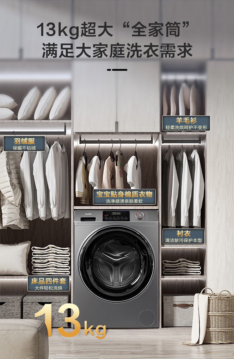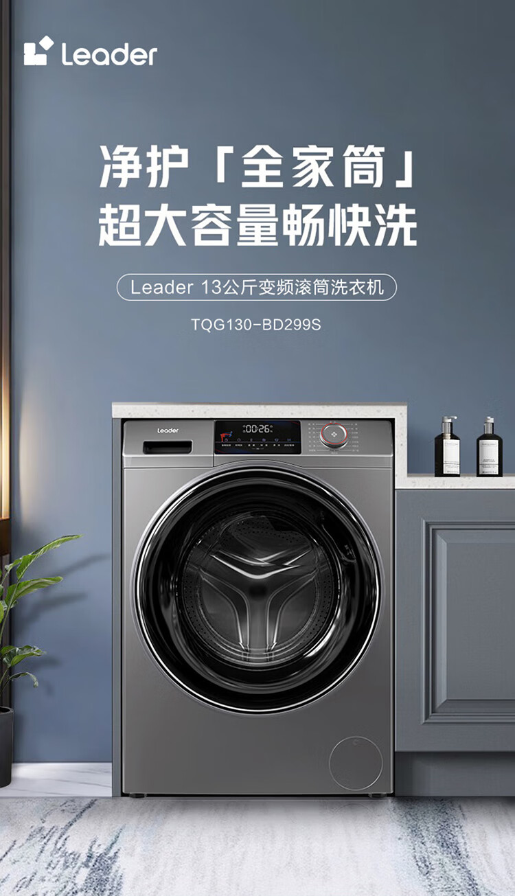 Leader海尔13公斤滚筒洗衣机全自动 大容量家用智能投放 525mm大筒径超薄双喷淋高温洗130BD299S以旧换新 13KG大容量丨智能投放丨525mm大桶径