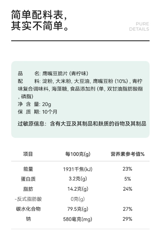 这款脆片中含有10%的鹰嘴豆粉可大有来头