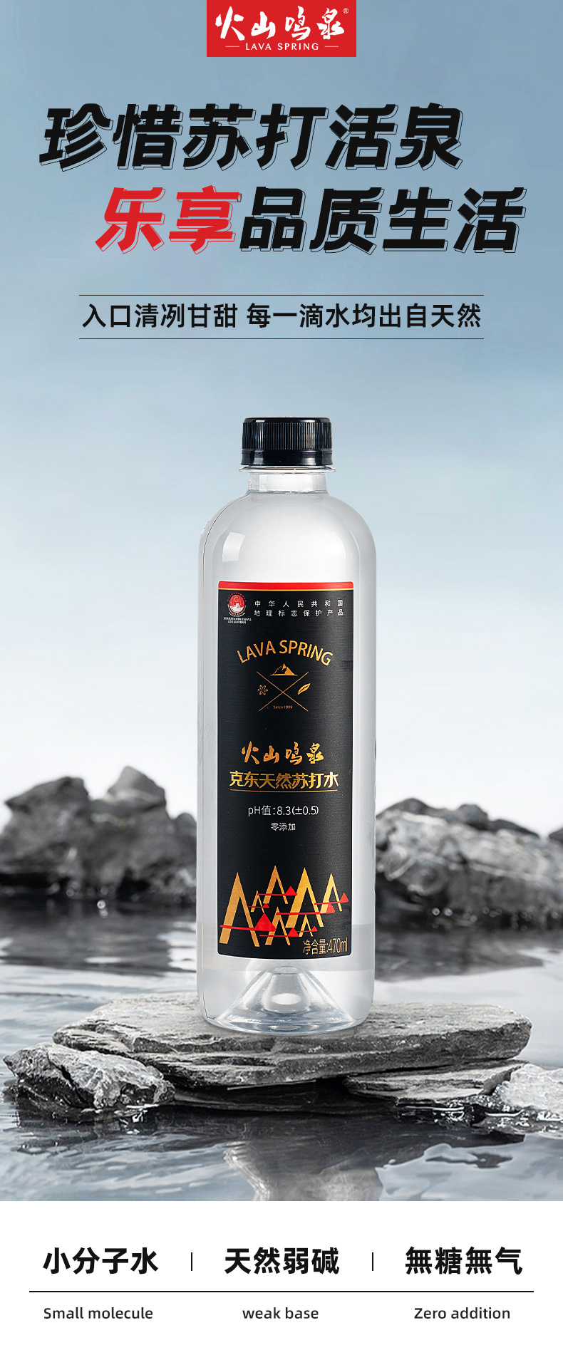 火山鸣泉克东天然苏打水470ml*15瓶/箱