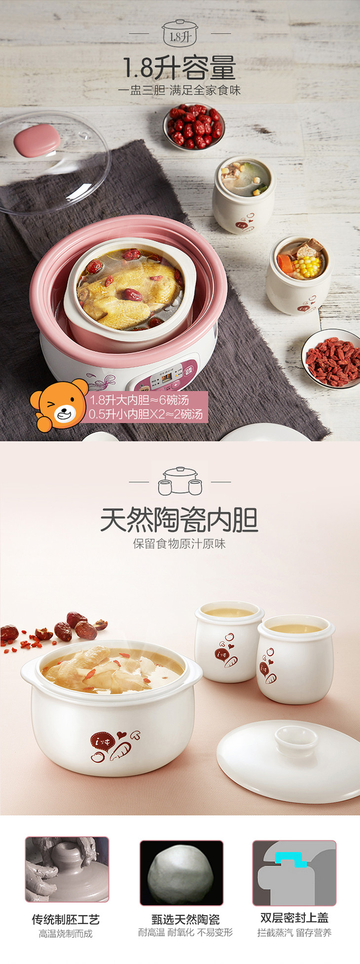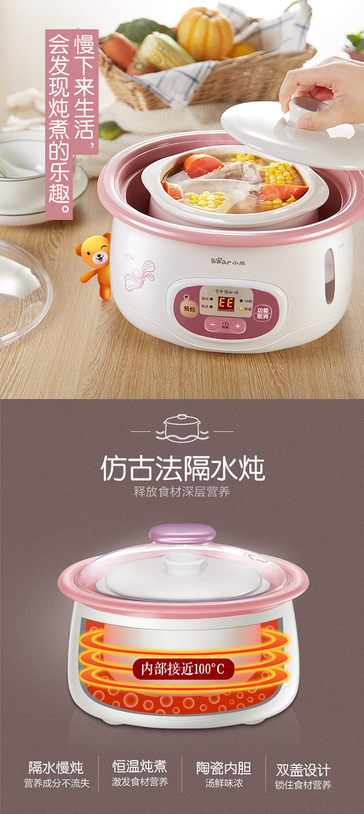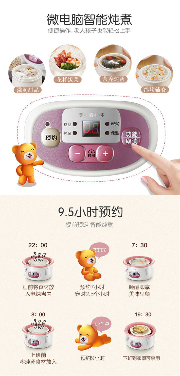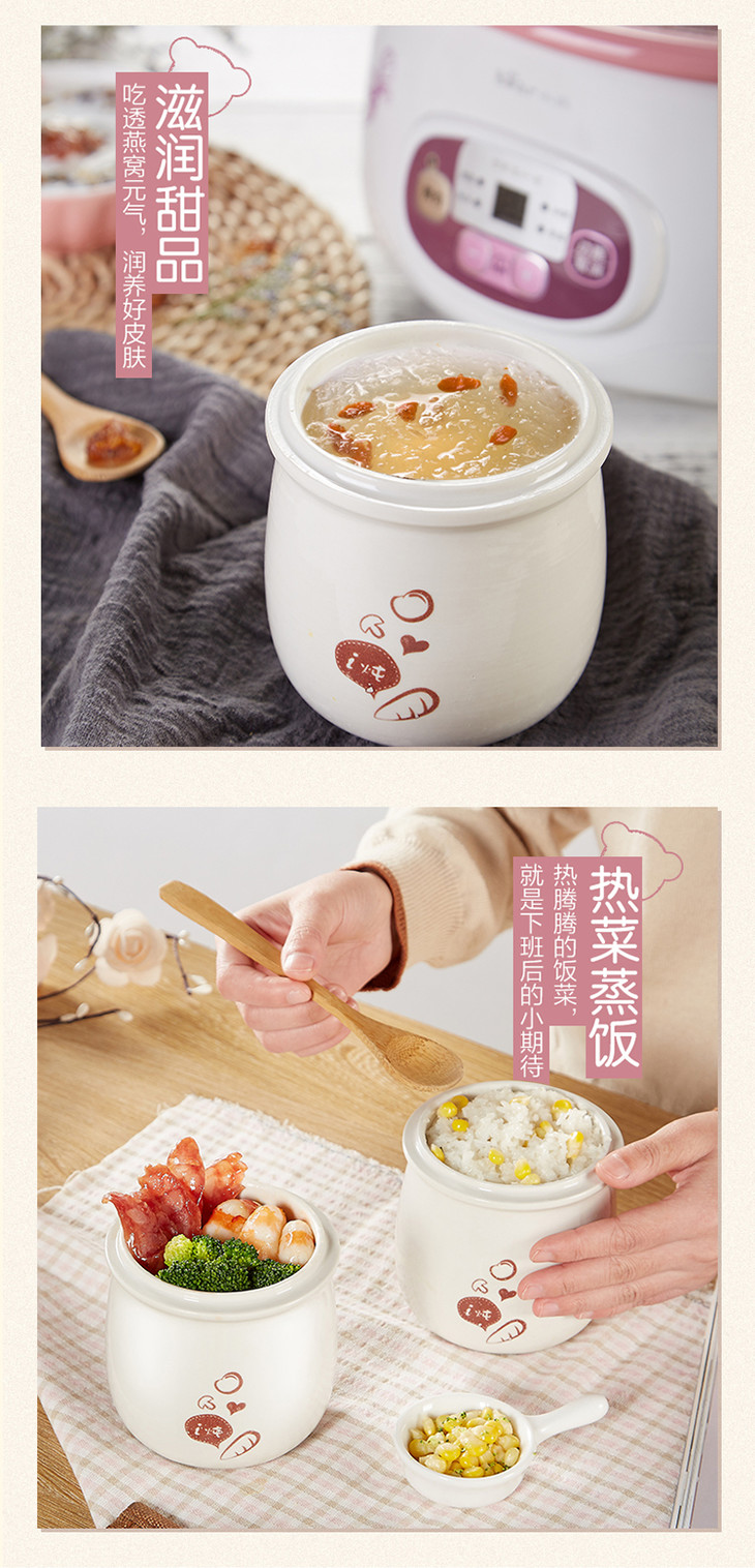 小熊(Bear)电炖锅 白瓷预约隔水电炖盅BB迷你煮粥煲汤锅DDZ-118TA 1.8L