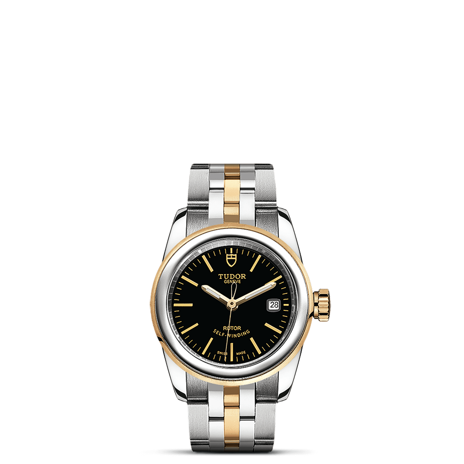 旋入式上链錶冠,饰以帝舵表标志;精钢覆有0.1毫米18K黄金薄层