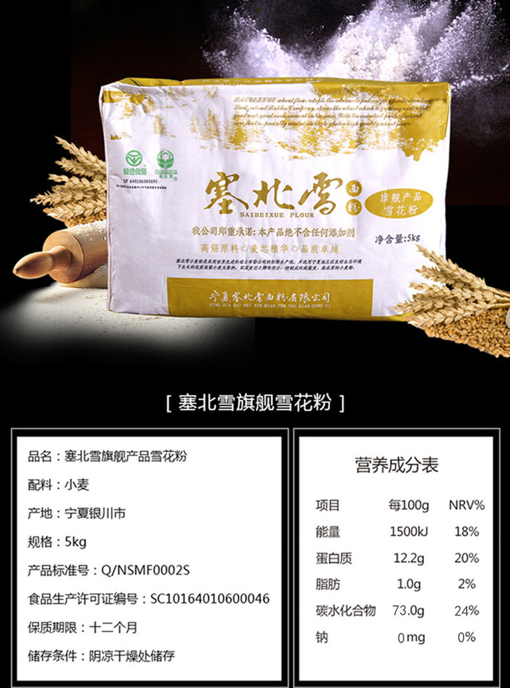 塞北雪面粉5kg家用雪花粉高筋粉10斤袋装小麦粉饺子馒头面粉