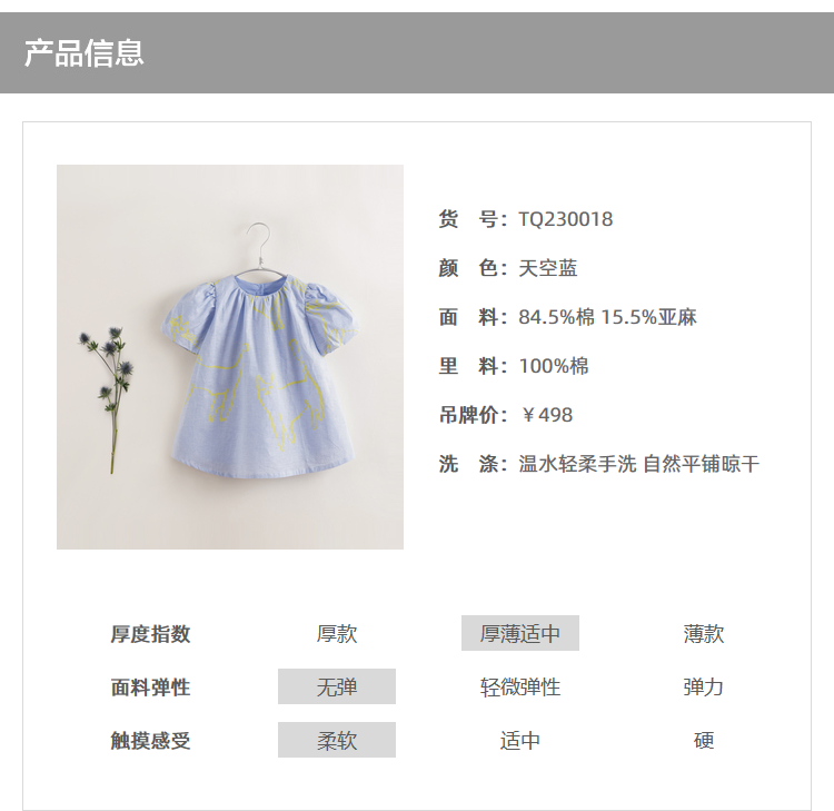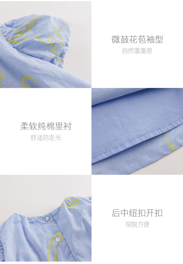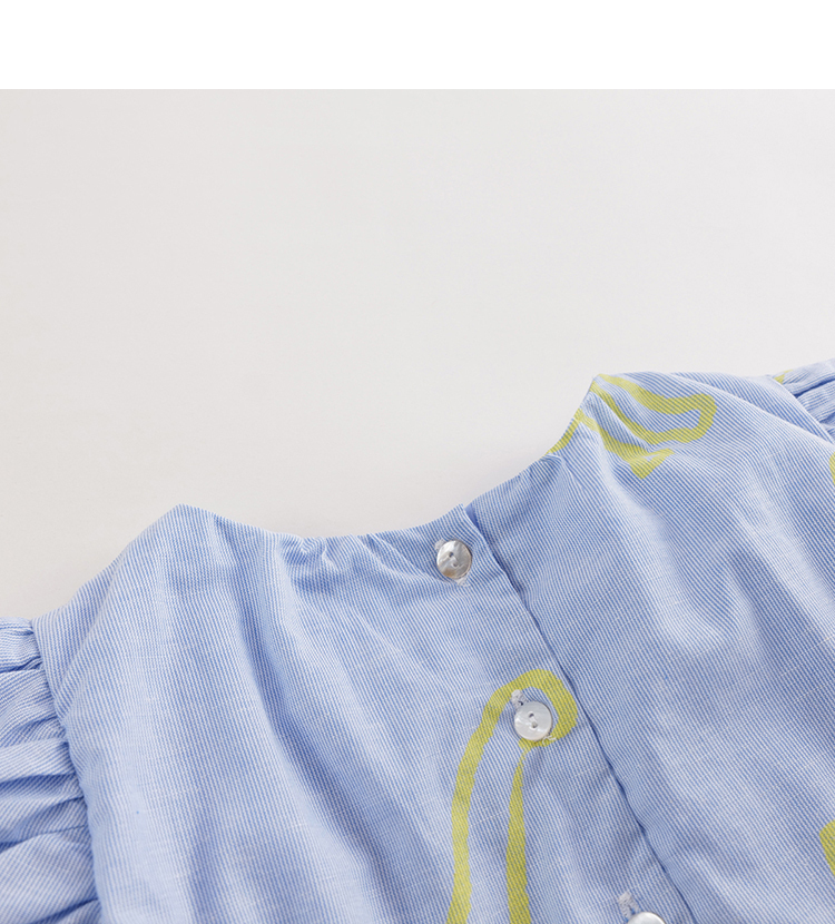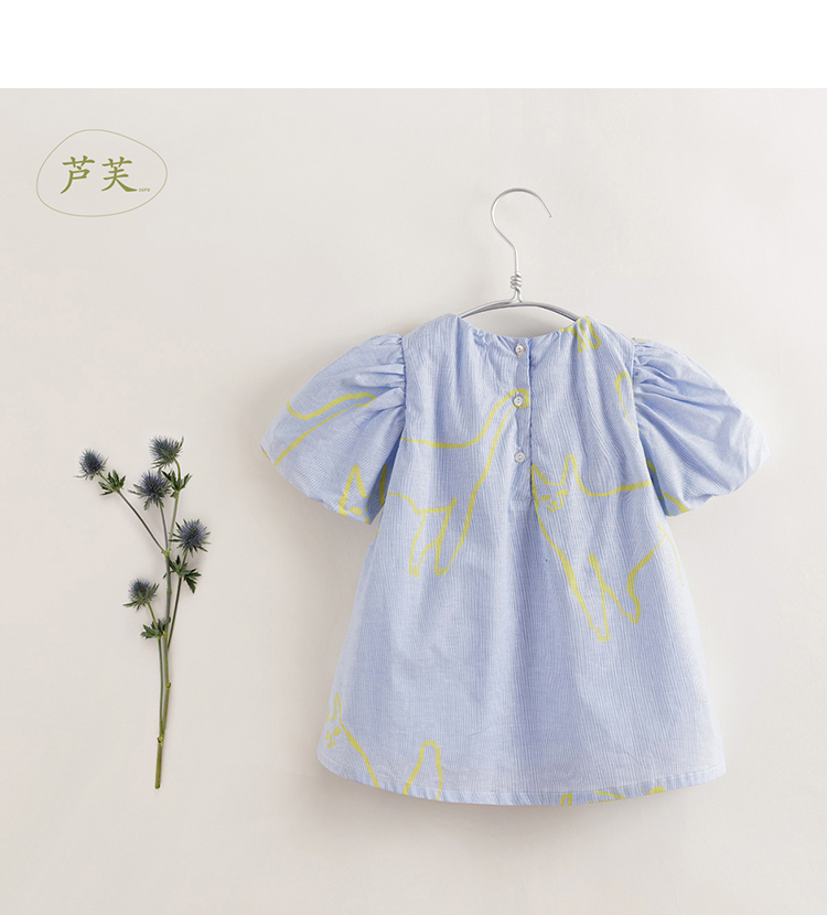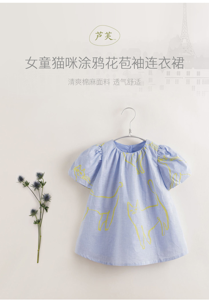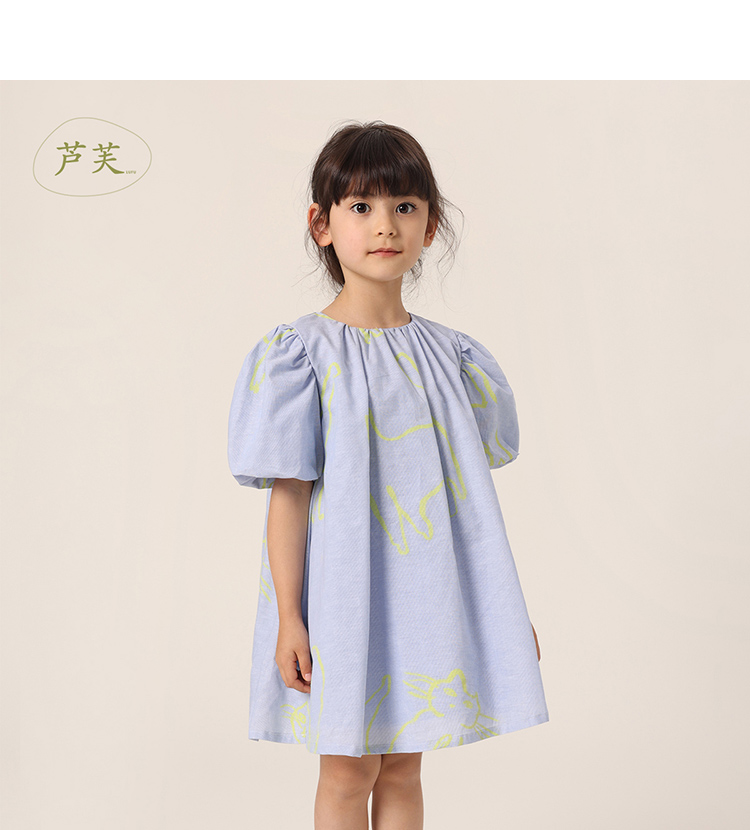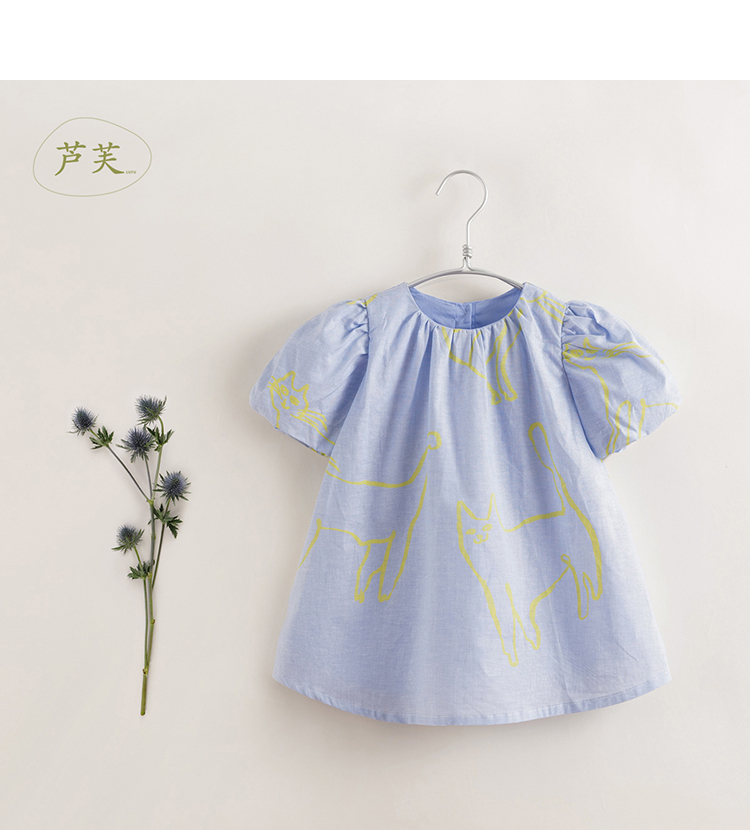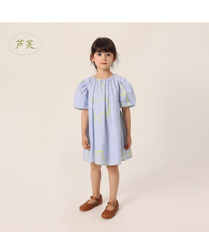 【马克珍妮 芦芙】夏装新款 女童棉麻花苞袖连衣裙230018