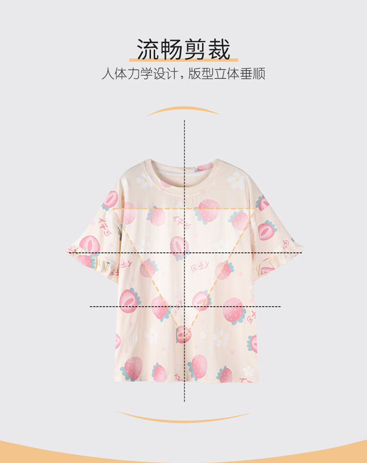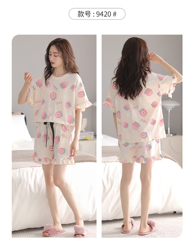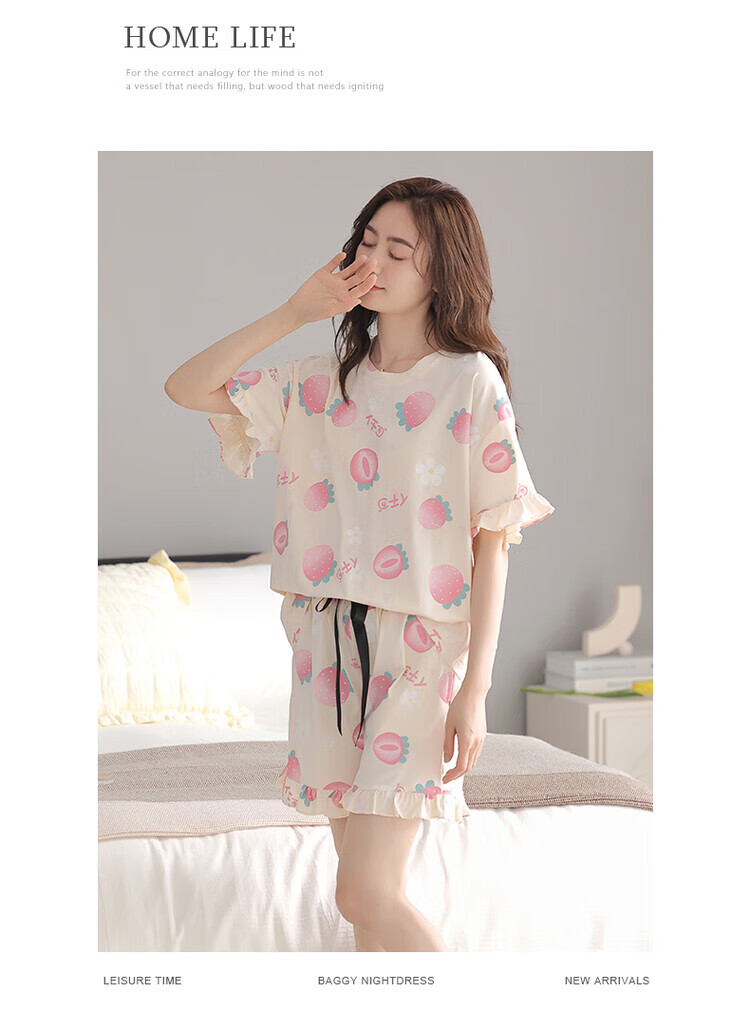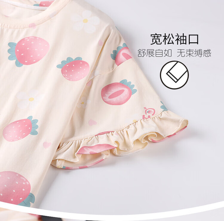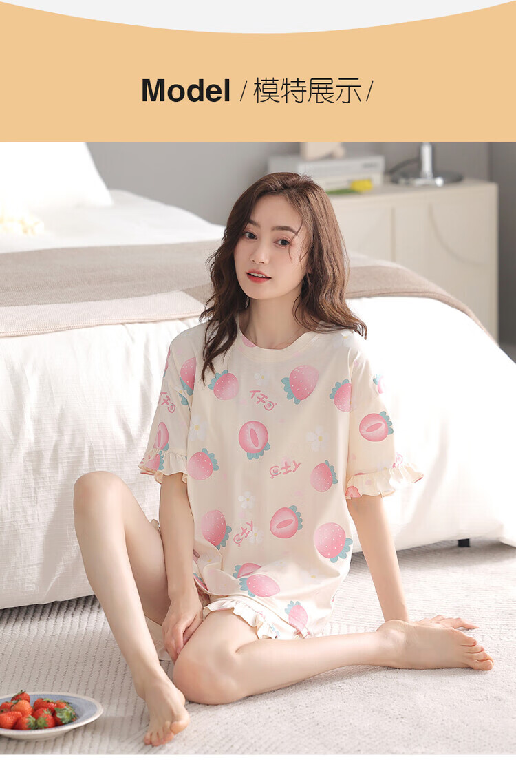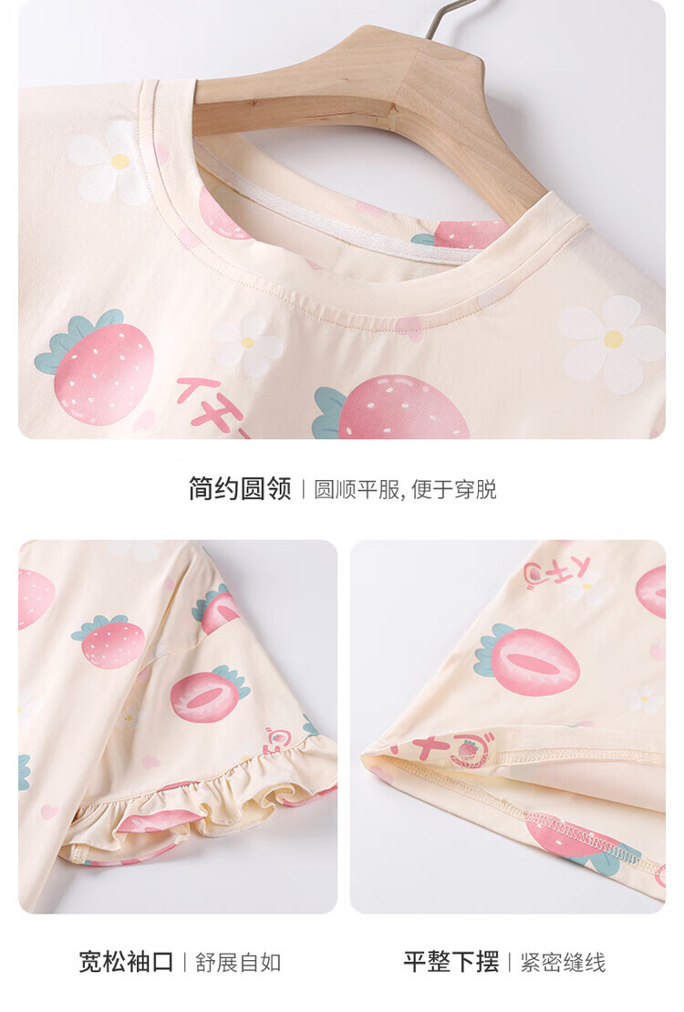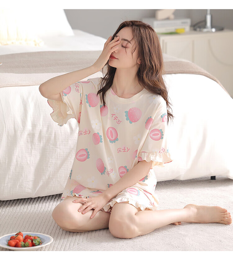 可人儿夏季纯棉短袖睡衣女士夏天薄款短裤少女外穿全棉家居服套装 杏黄色 M(女160)