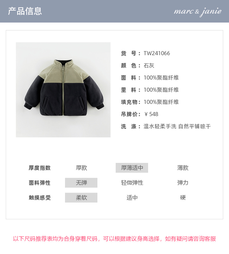 马克珍妮男童双面穿撞色夹棉外套2024秋冬新款241066