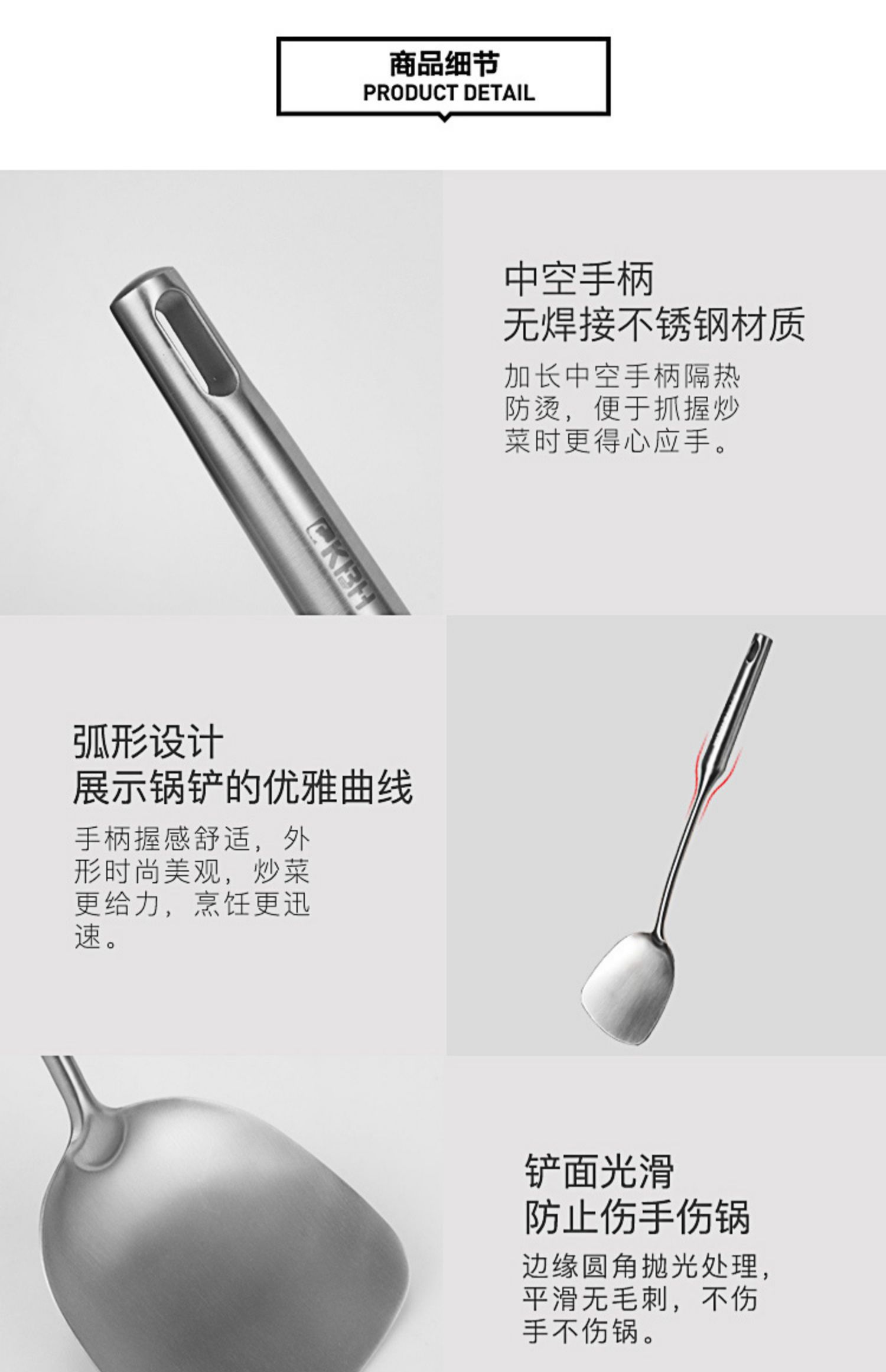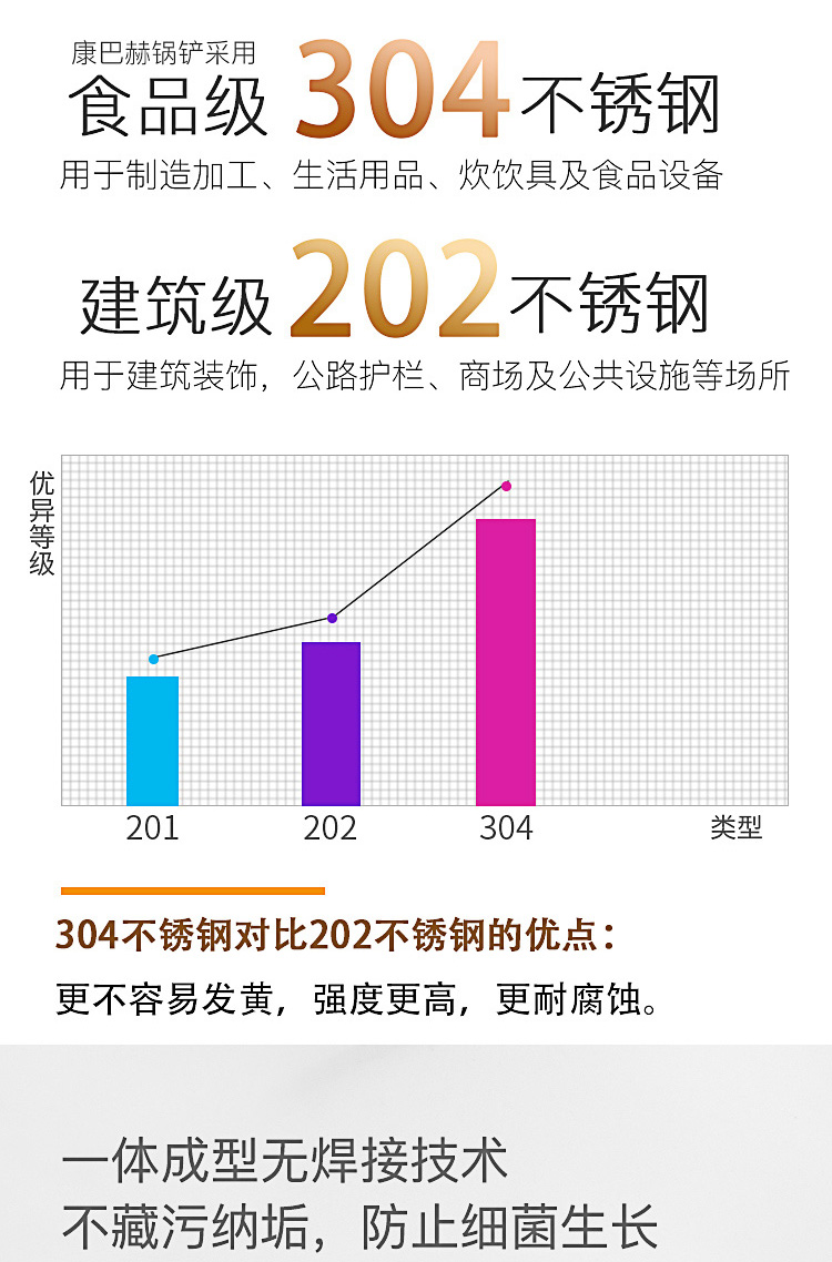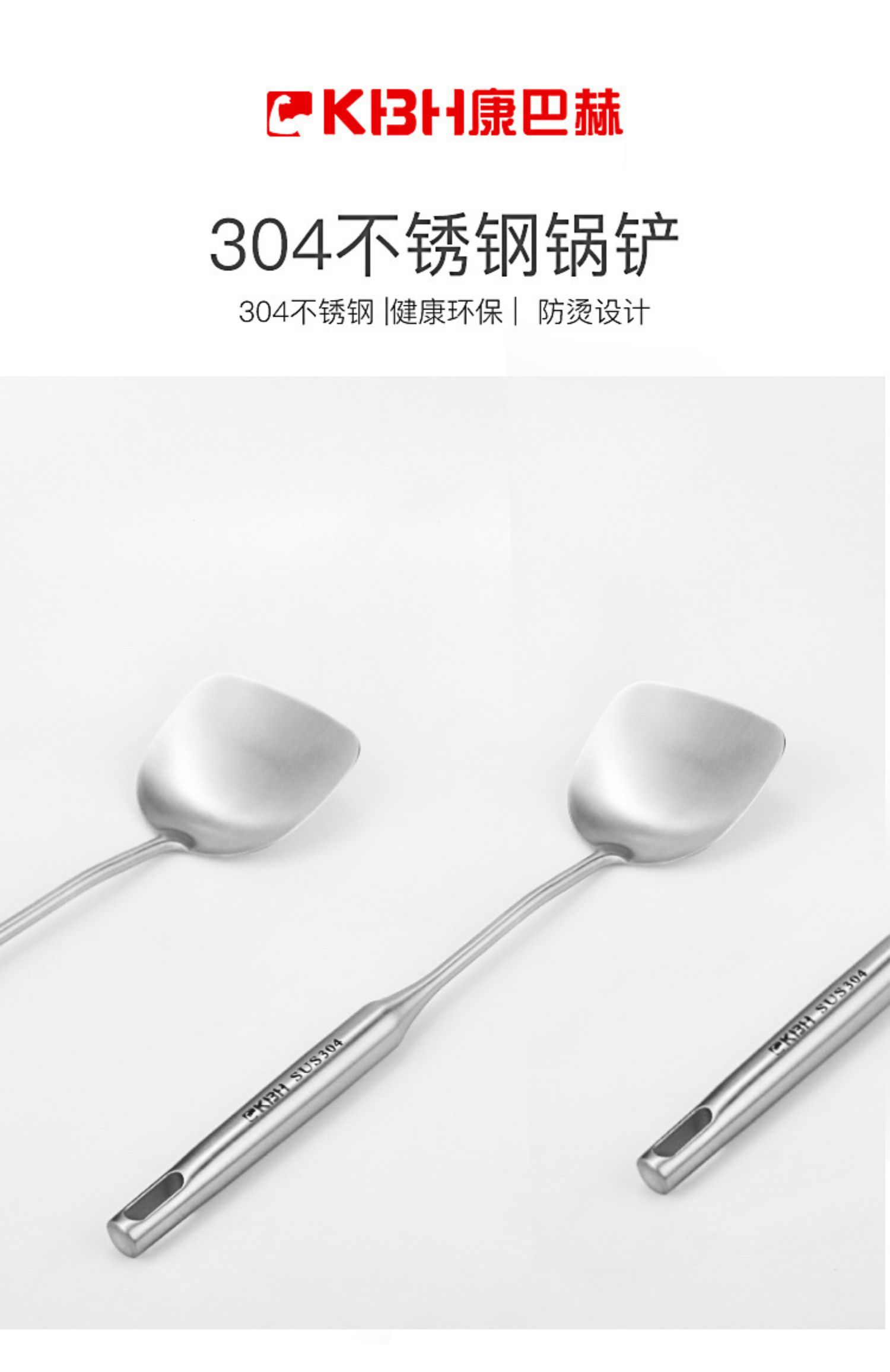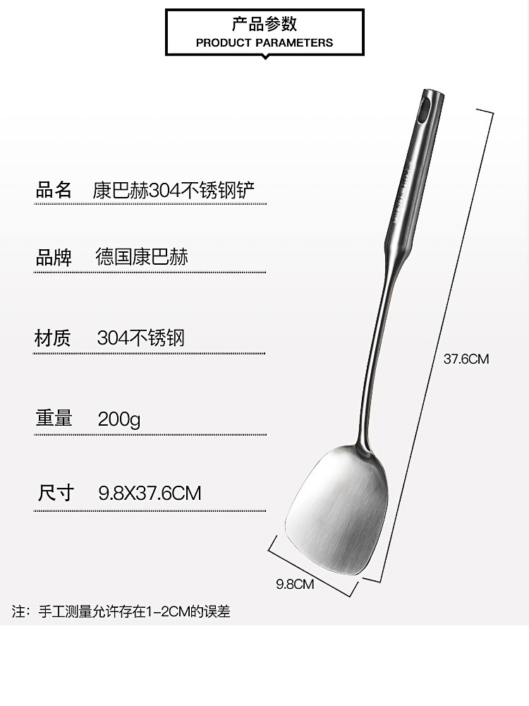 康巴赫304不锈钢锅铲长柄加厚单个一体家用大号厨师汤勺炒菜铲子