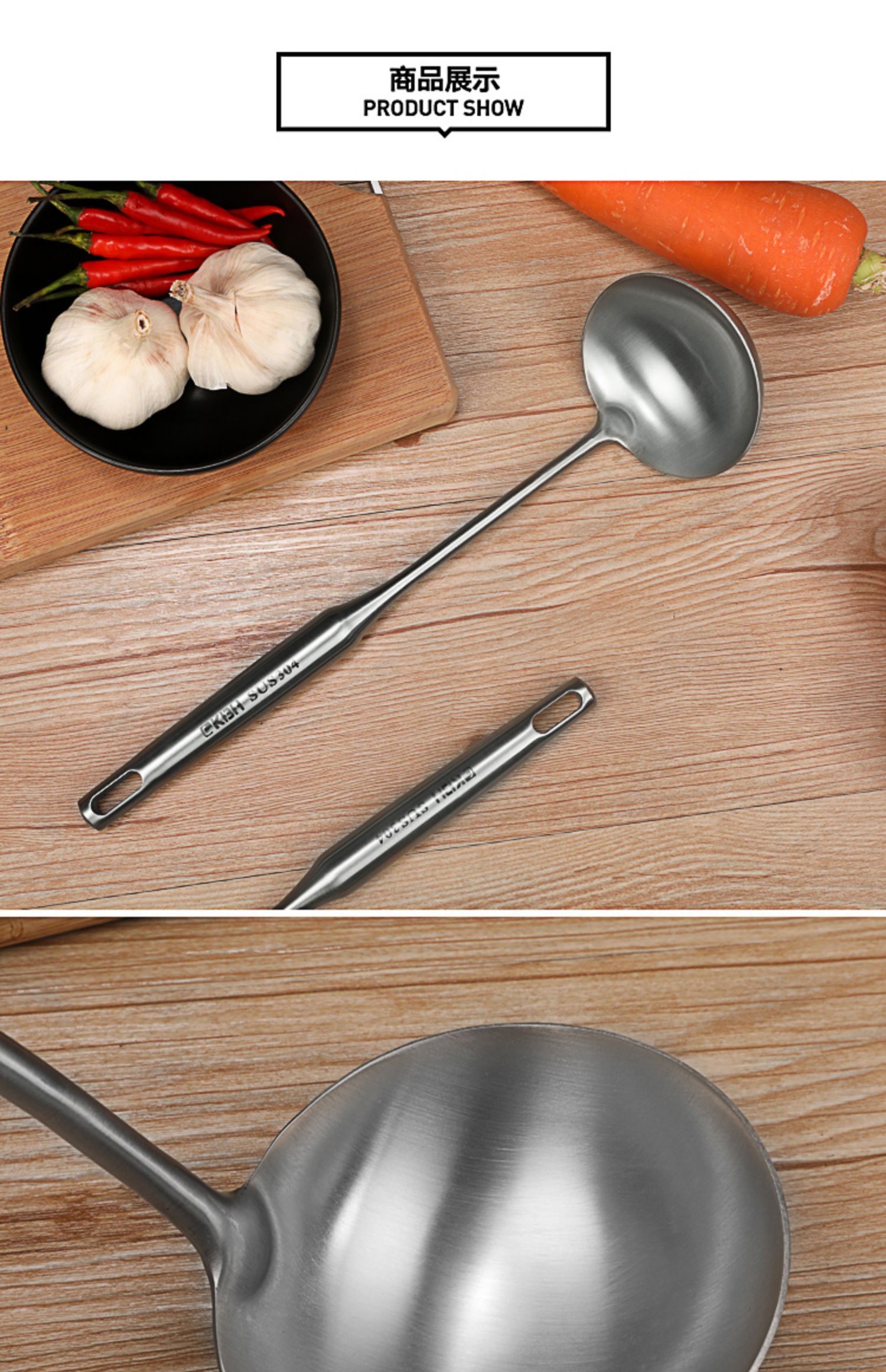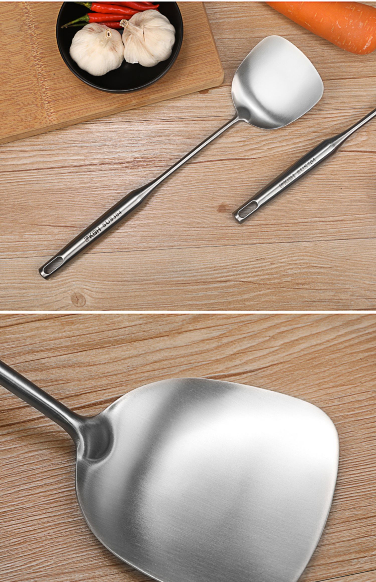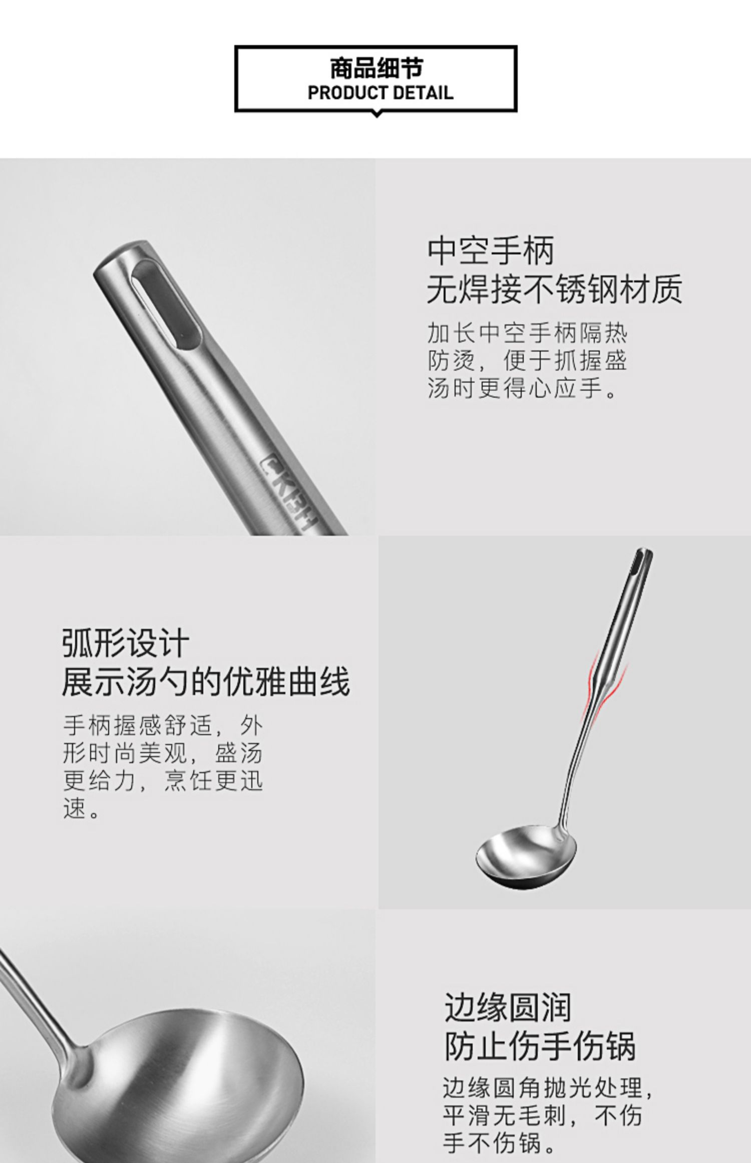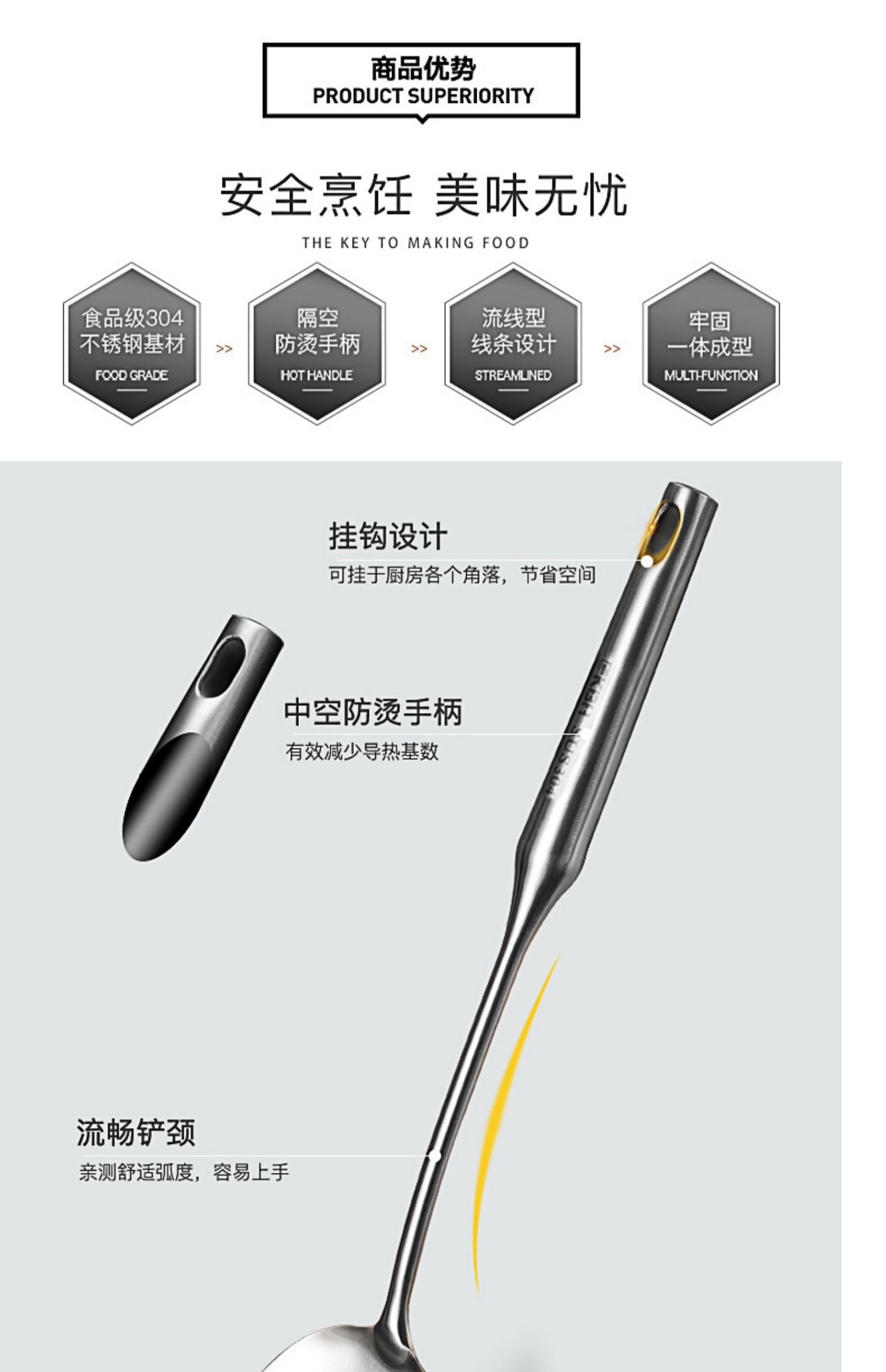 康巴赫304不锈钢锅铲长柄加厚单个一体家用大号厨师汤勺炒菜铲子