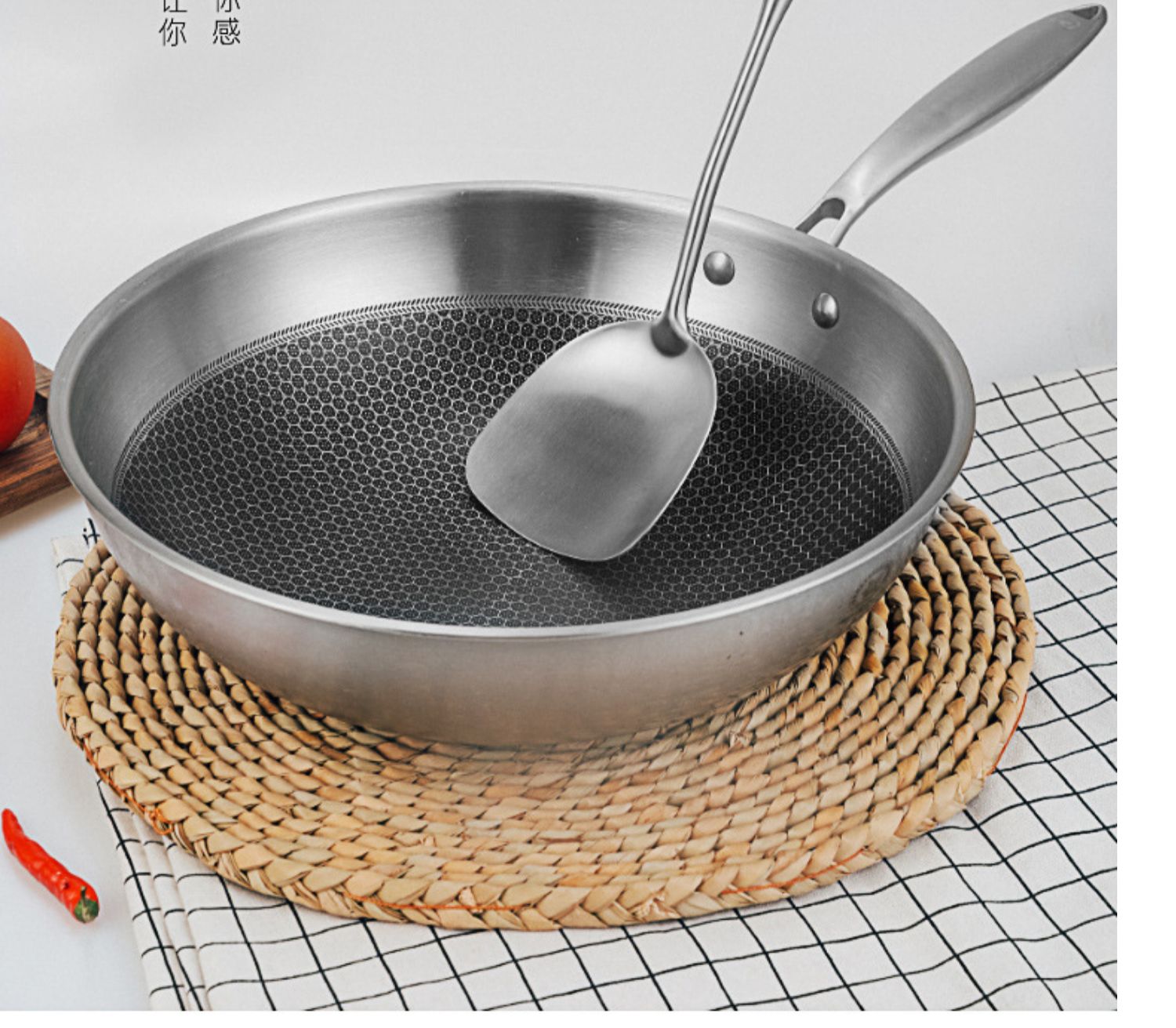 康巴赫第五代蜂窝不粘锅炒锅不锈钢炒菜锅家用