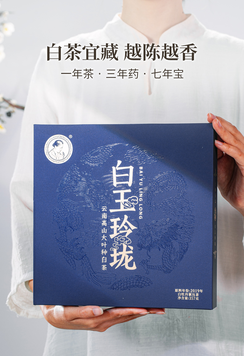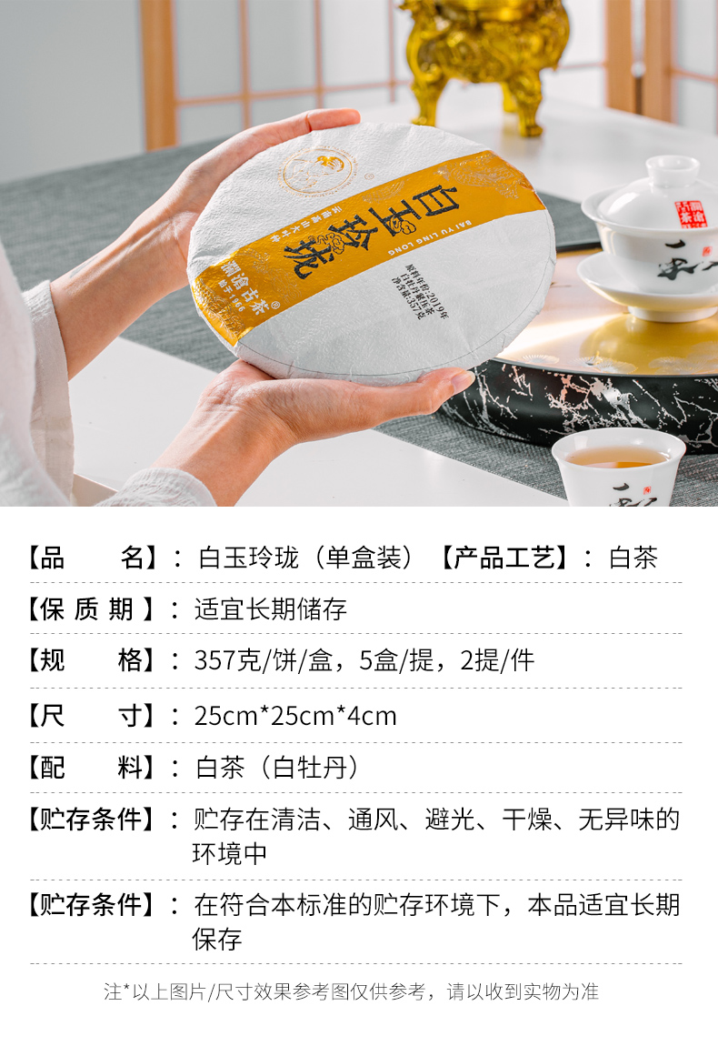 白玉玲珑大饼(单盒装) 白茶,357克,2023年