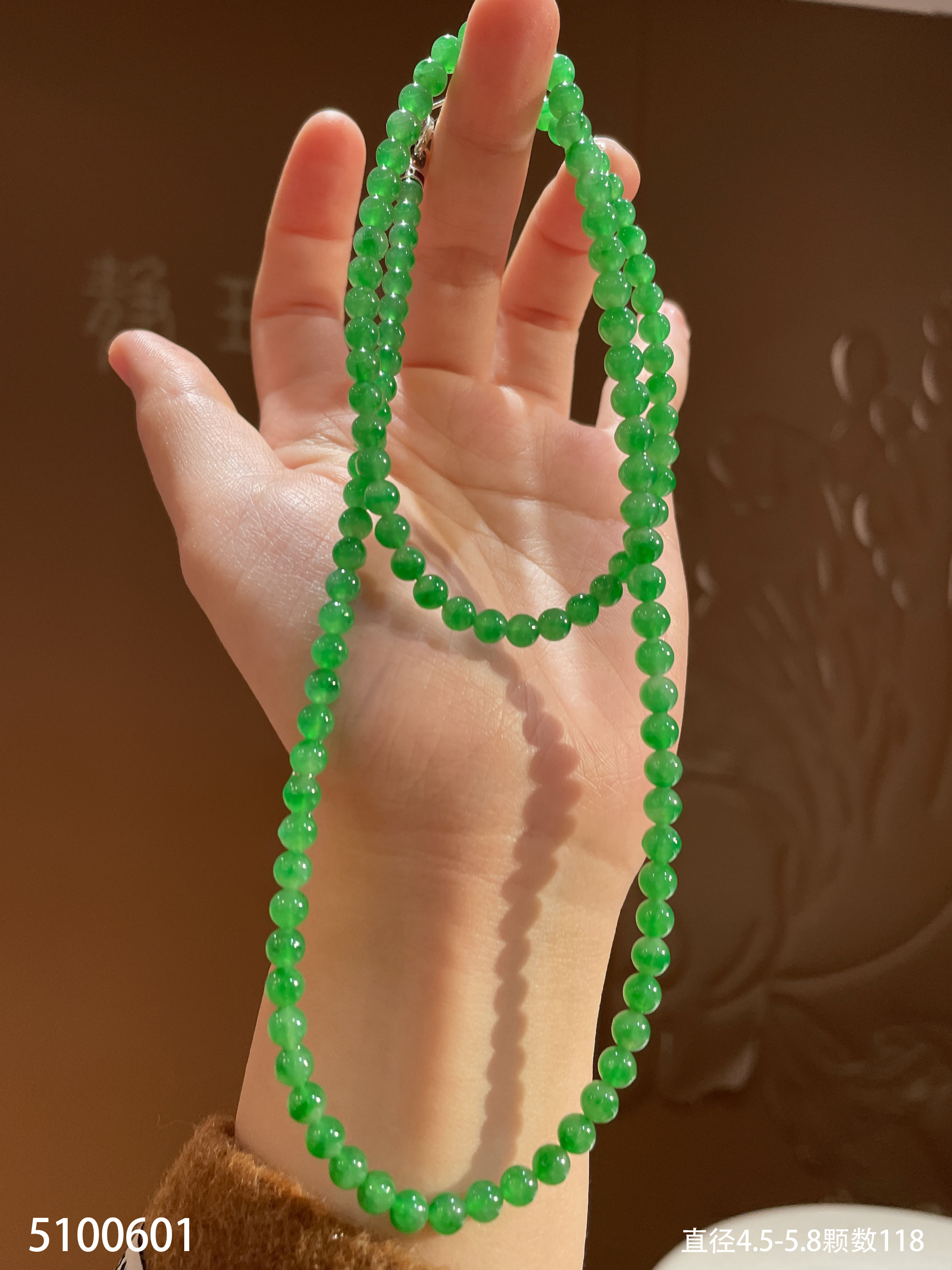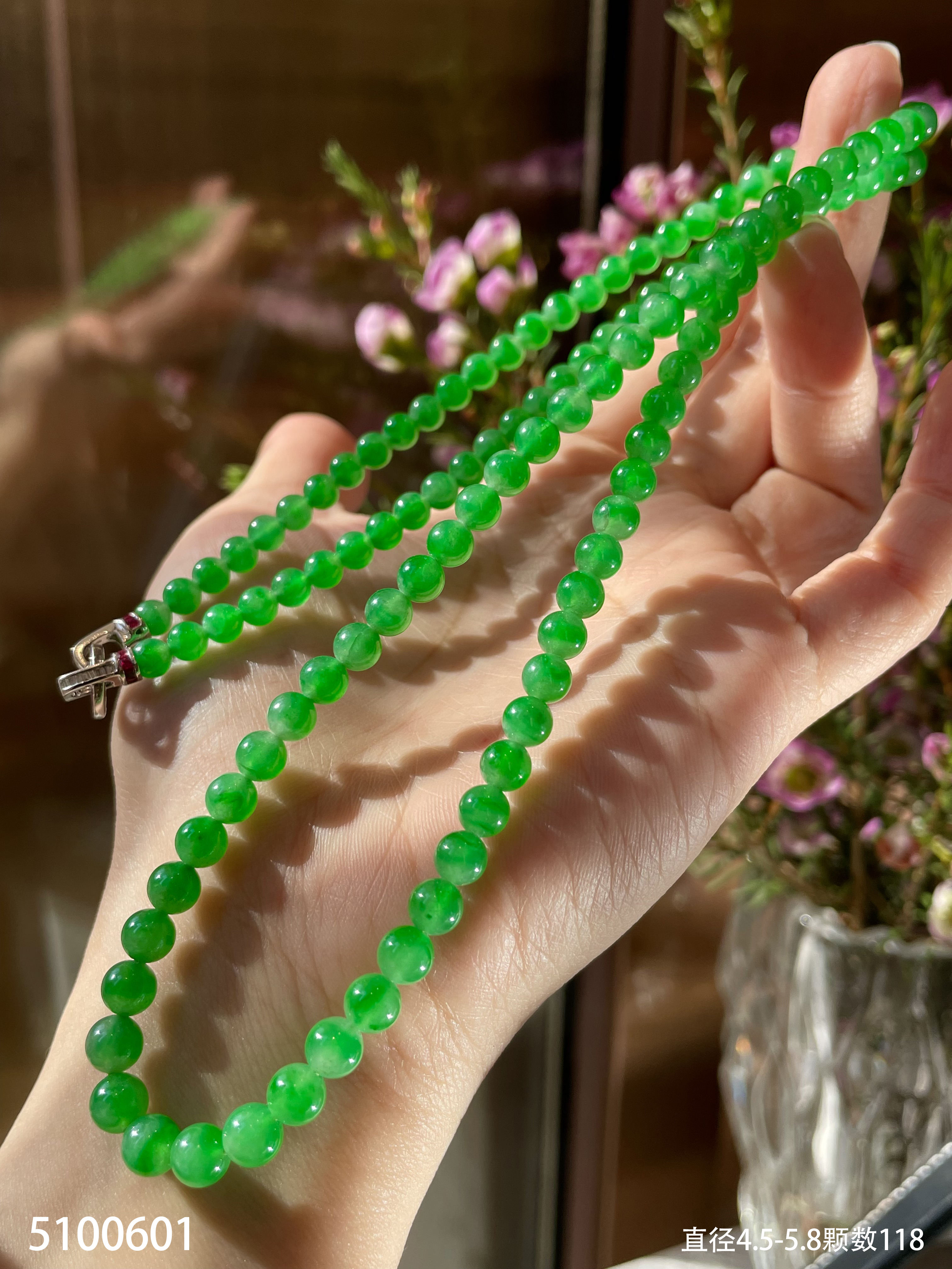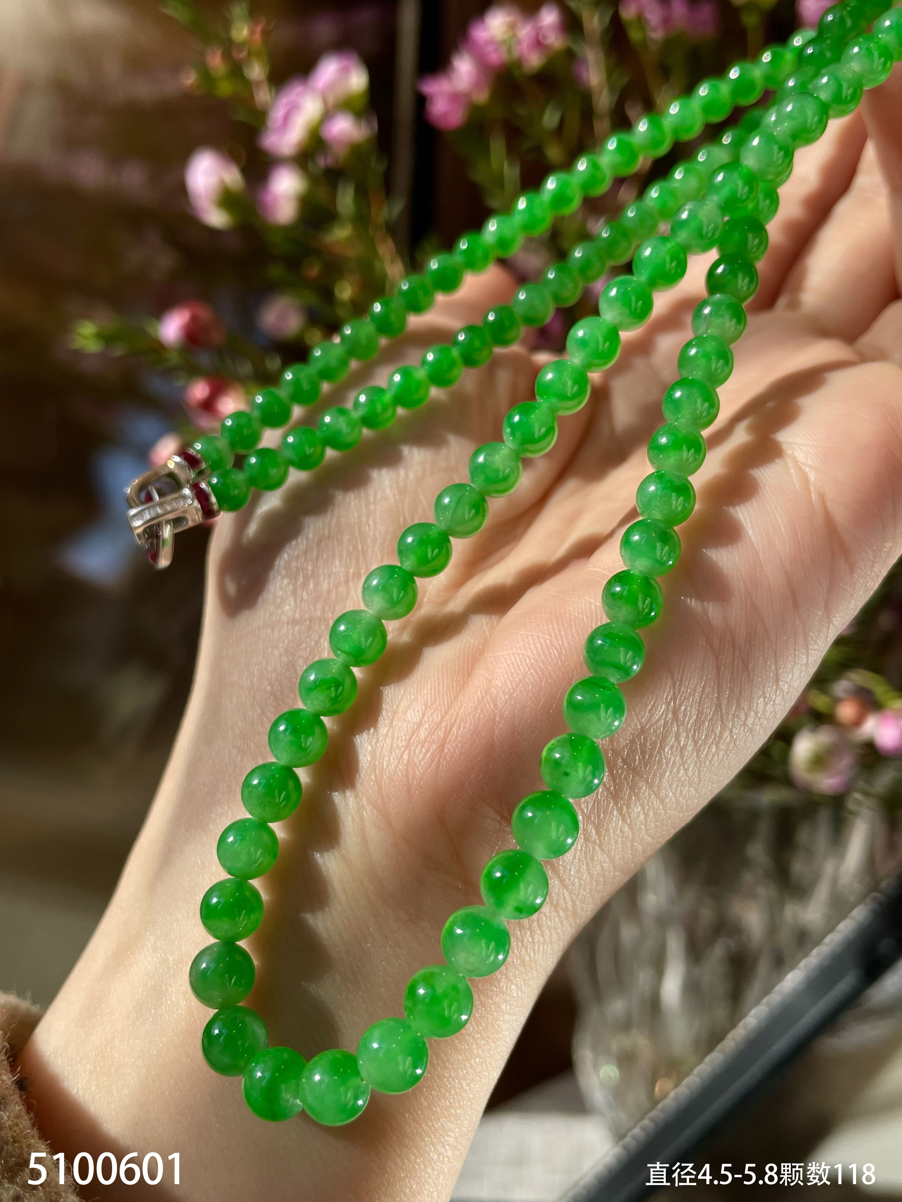 老坑高冰艳绿珠链【5100601】具体价格微信咨询