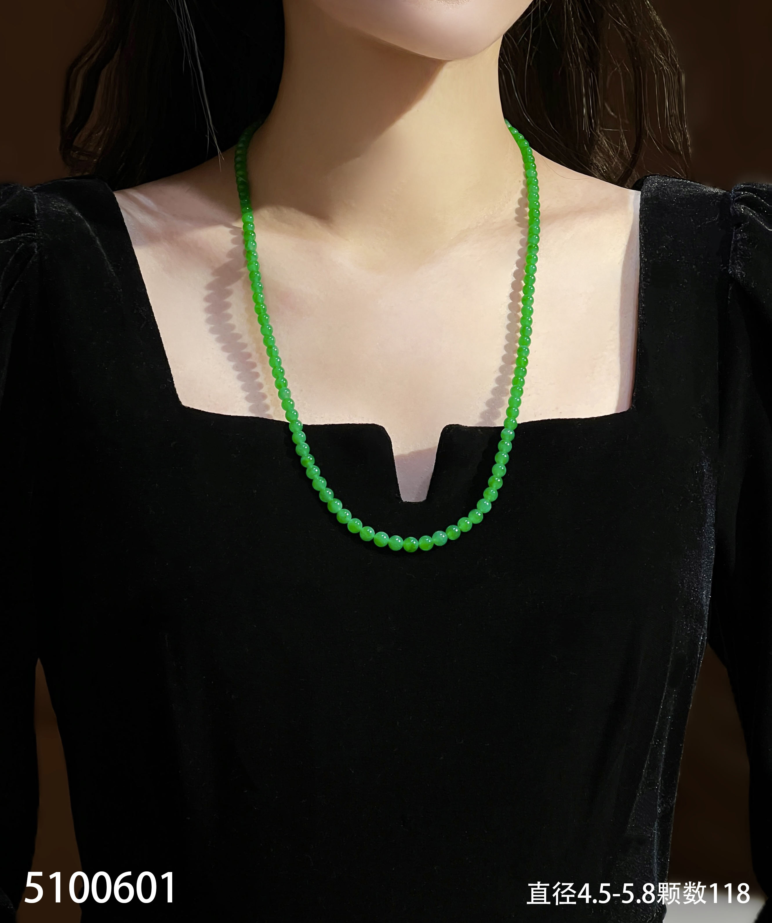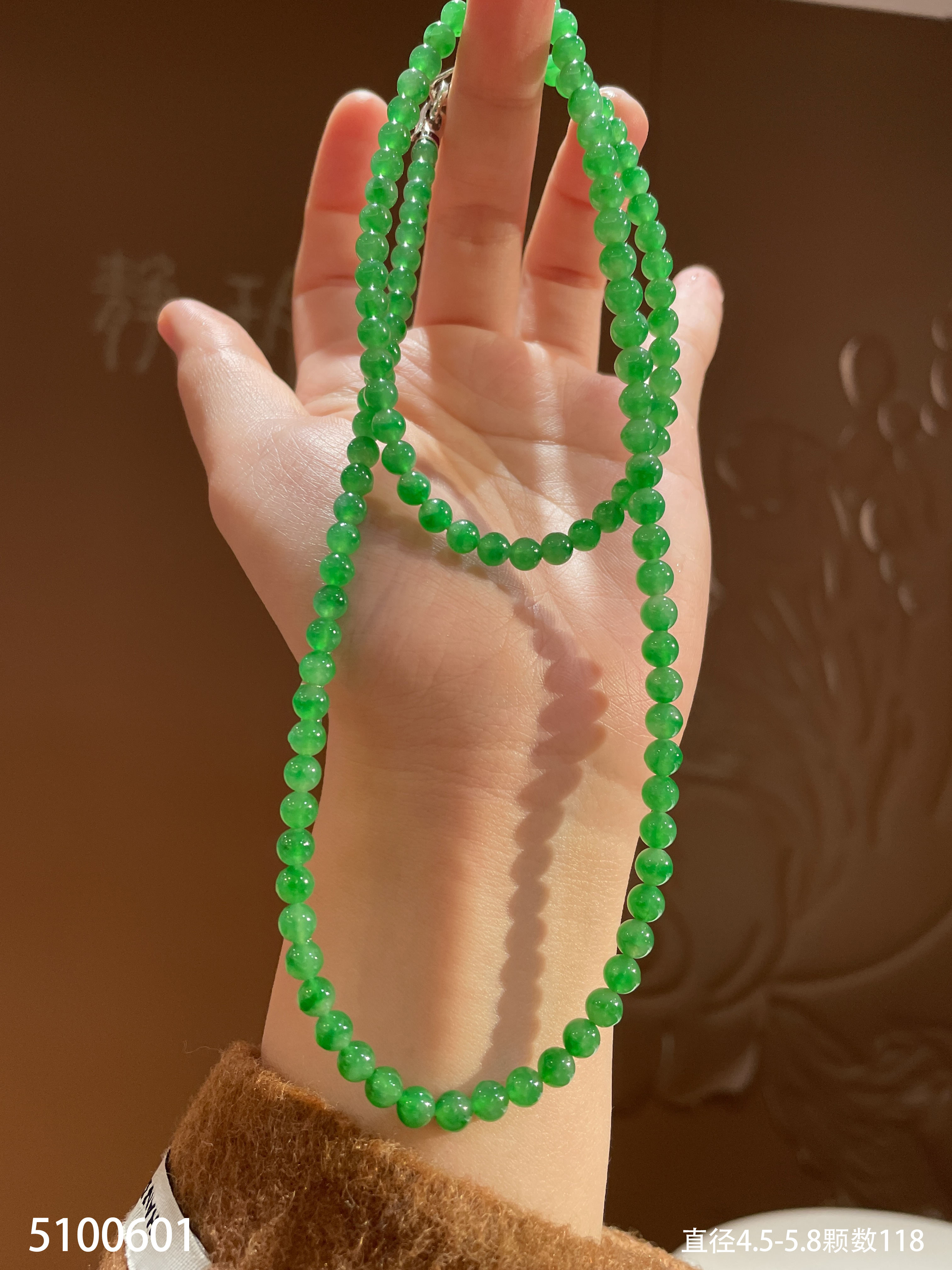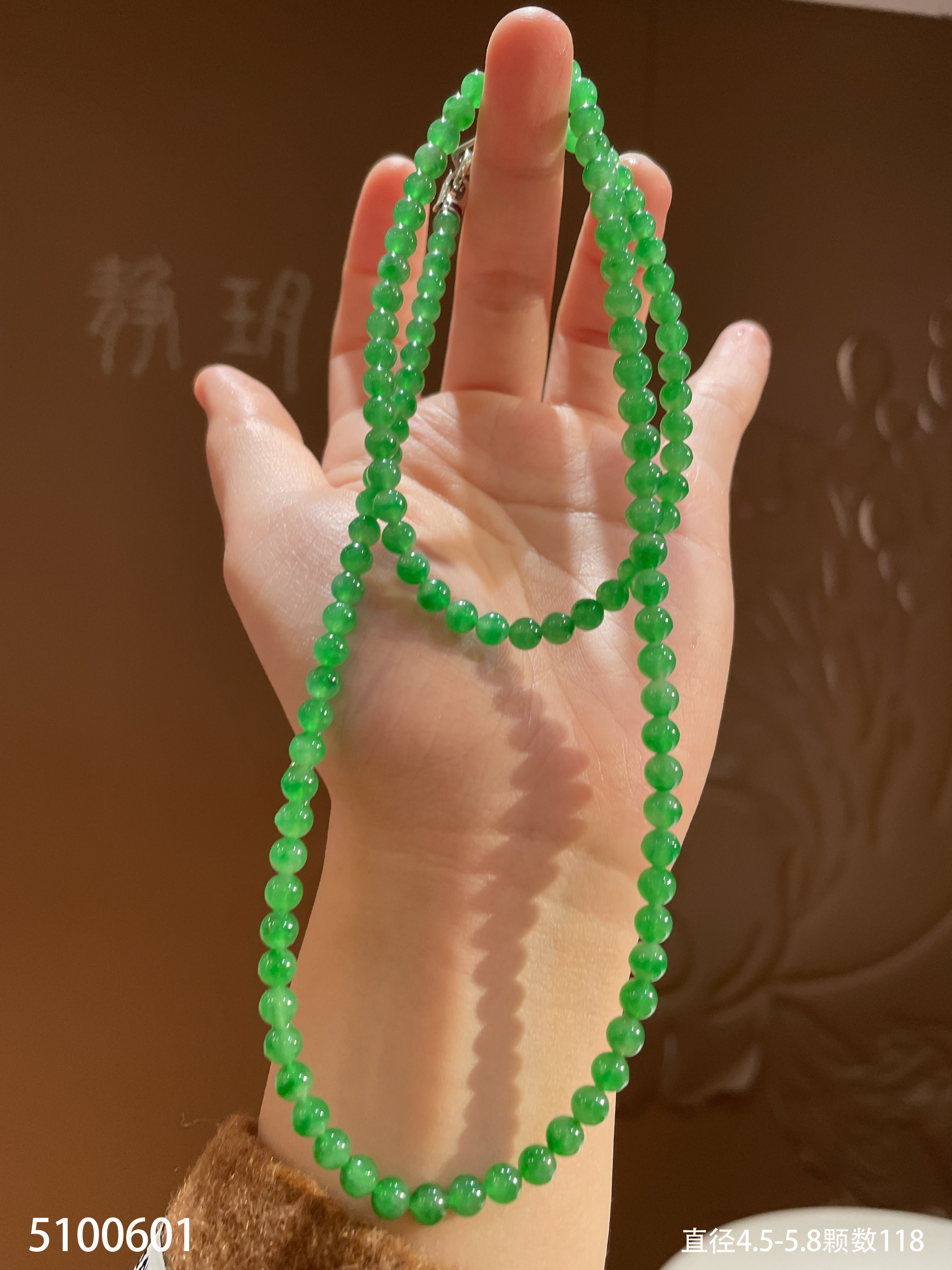 老坑高冰艳绿珠链【5100601】具体价格微信咨询
