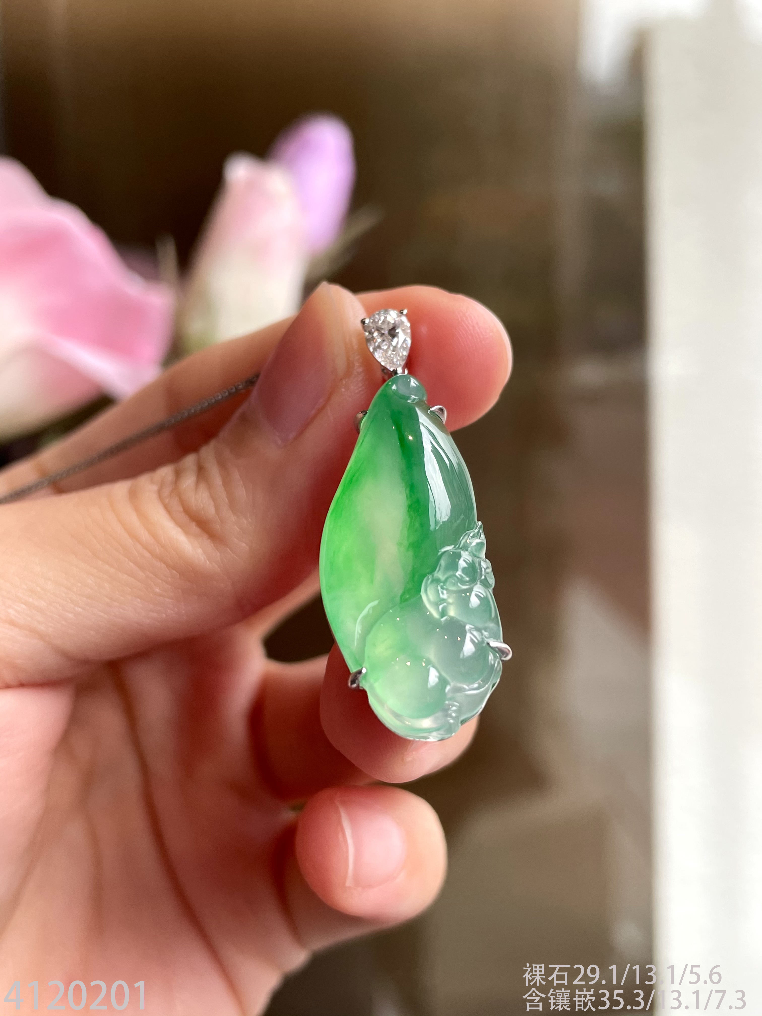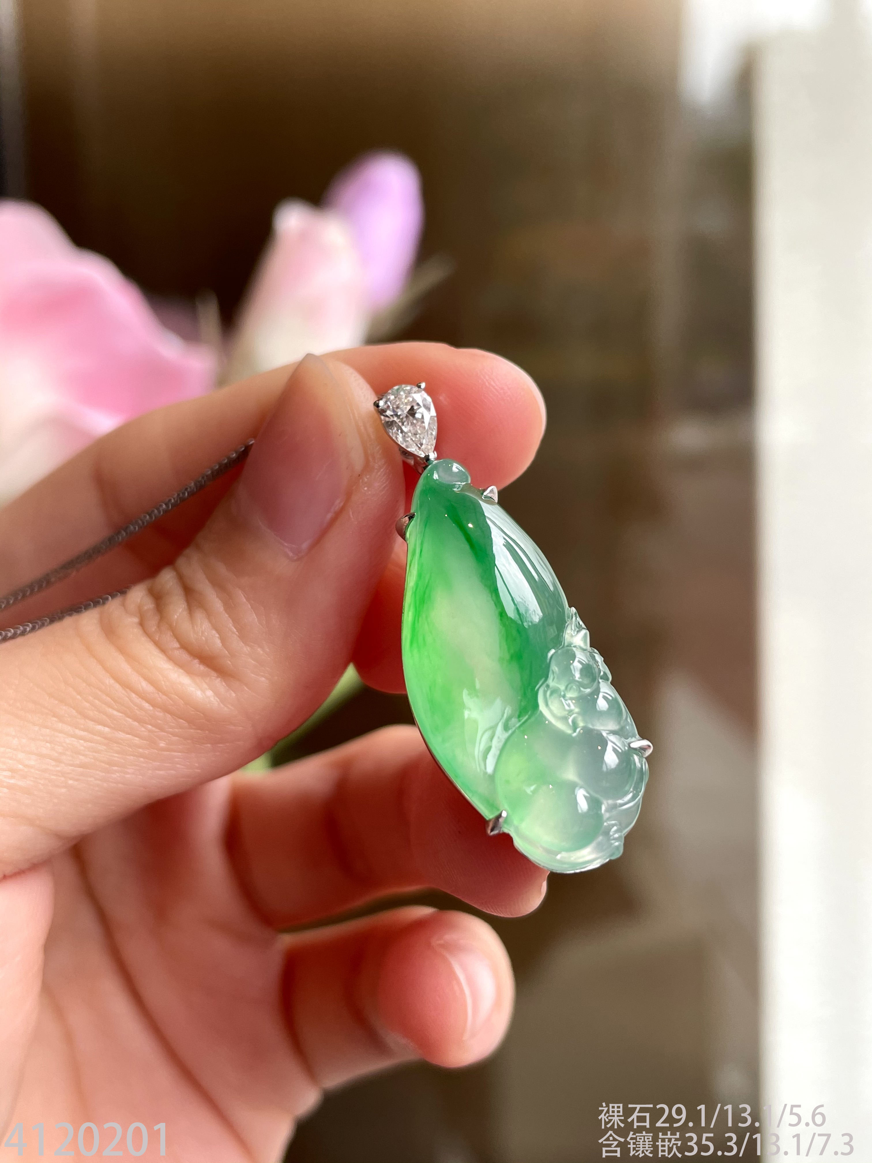 玻璃种飘翠松鼠吊坠 99999【4120201】