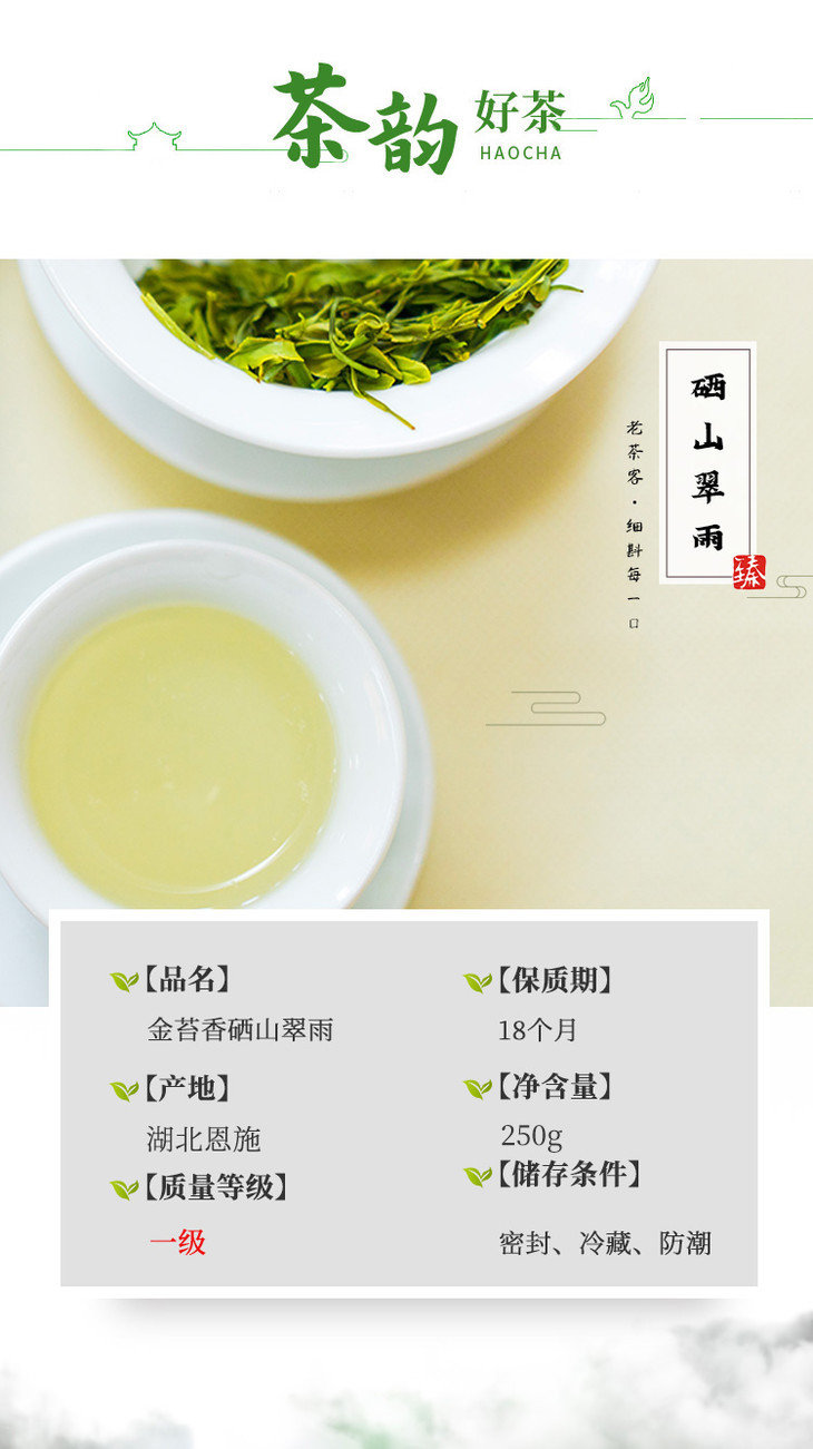 金苔香 硒山翠雨 炒青绿茶一级-口粮茶250g/罐 恩施