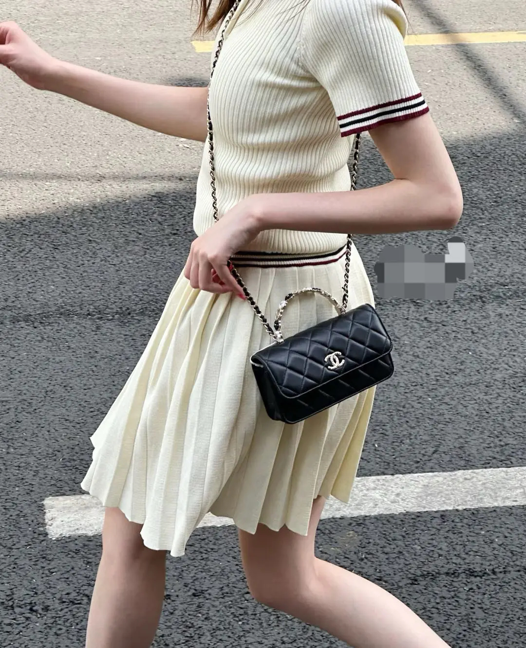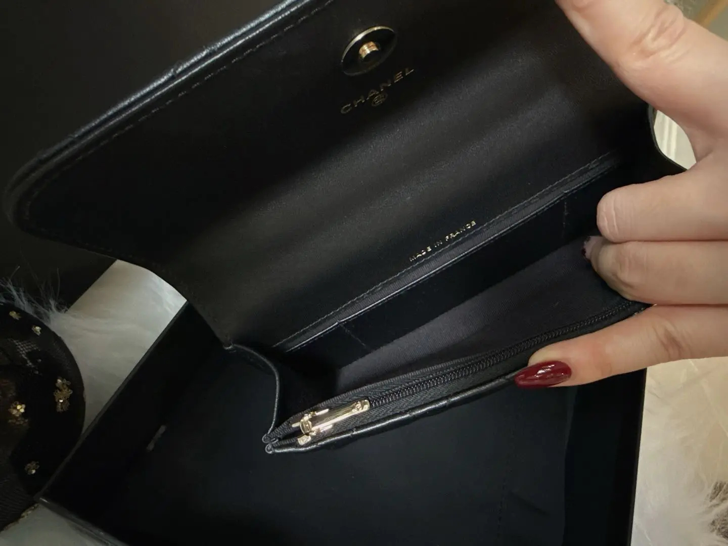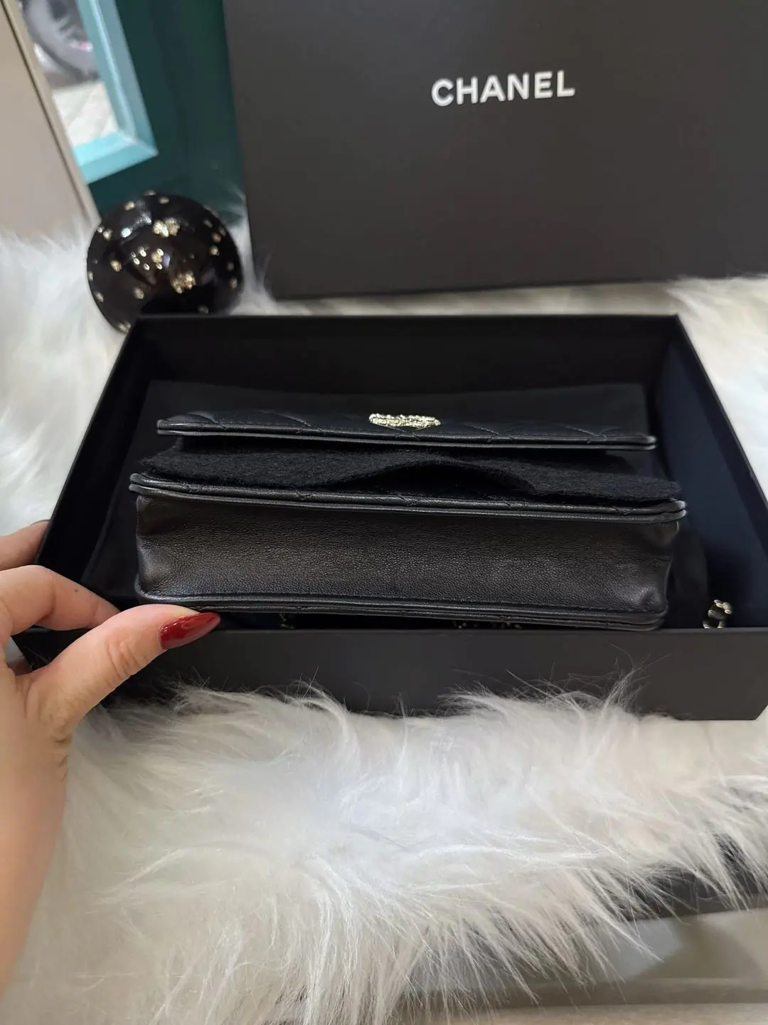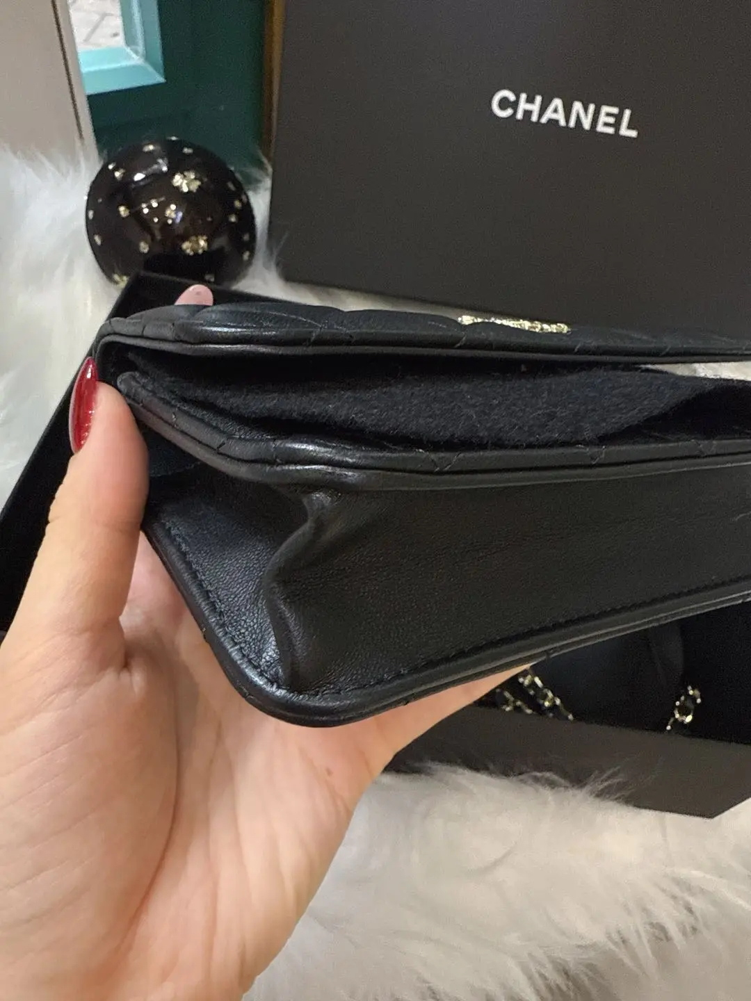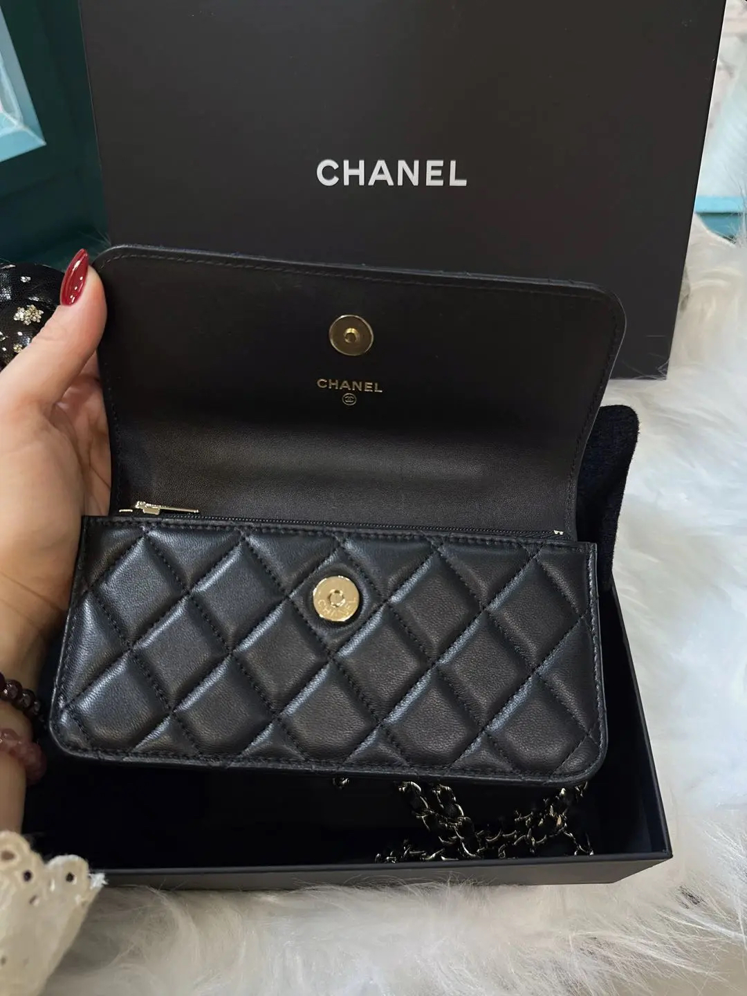 【商品详情】正品二手 Chanel 23k 山茶花手柄 woc 羊皮 手提包👜98新 19*12 新钢标 配件:说明书 防尘袋 盒子。精致女孩必入