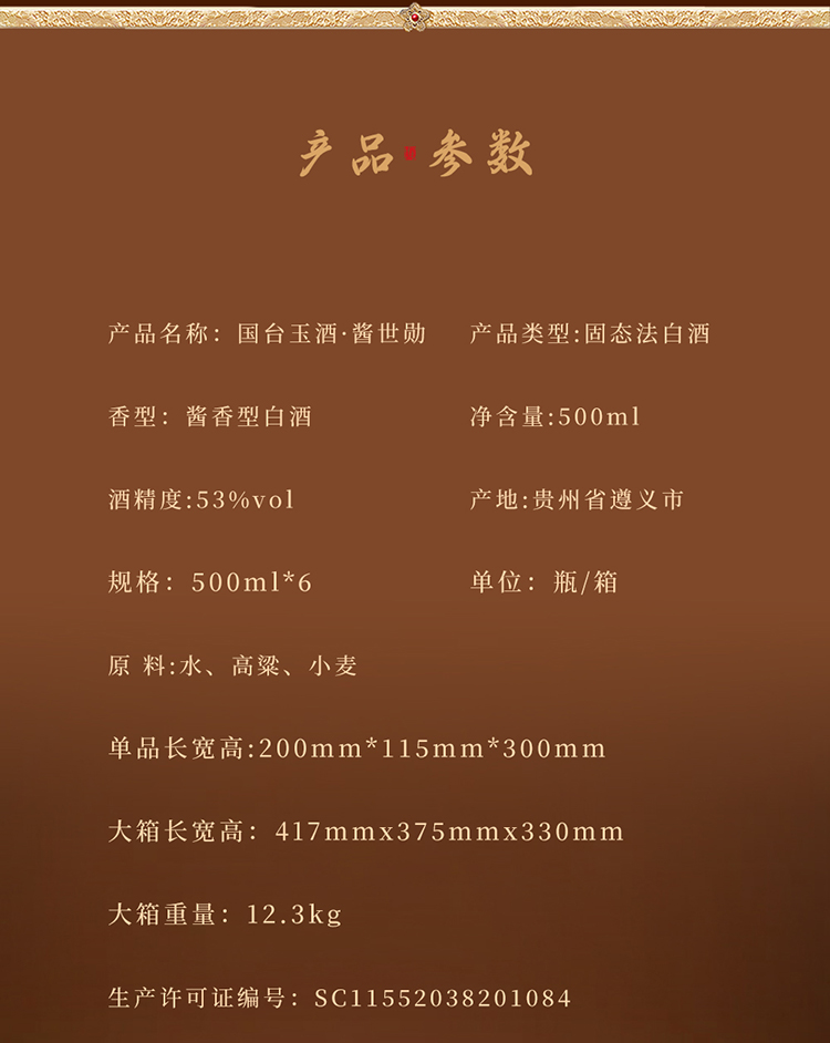 【新品】53度国台 國台玉酒·酱世勋(红色款)酱香型1*500ML