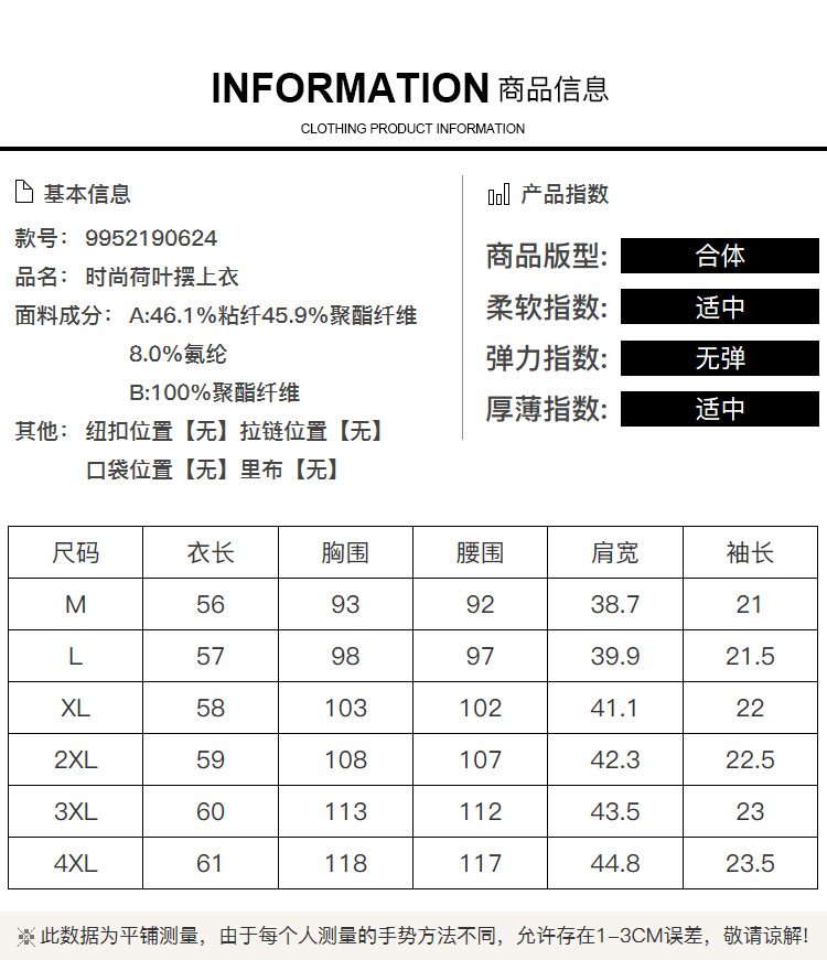 【清仓超15天不保价】奢姿大码女装2025夏季减龄荷叶摆时尚T恤胖妹妹简约休闲百搭上衣9952190624