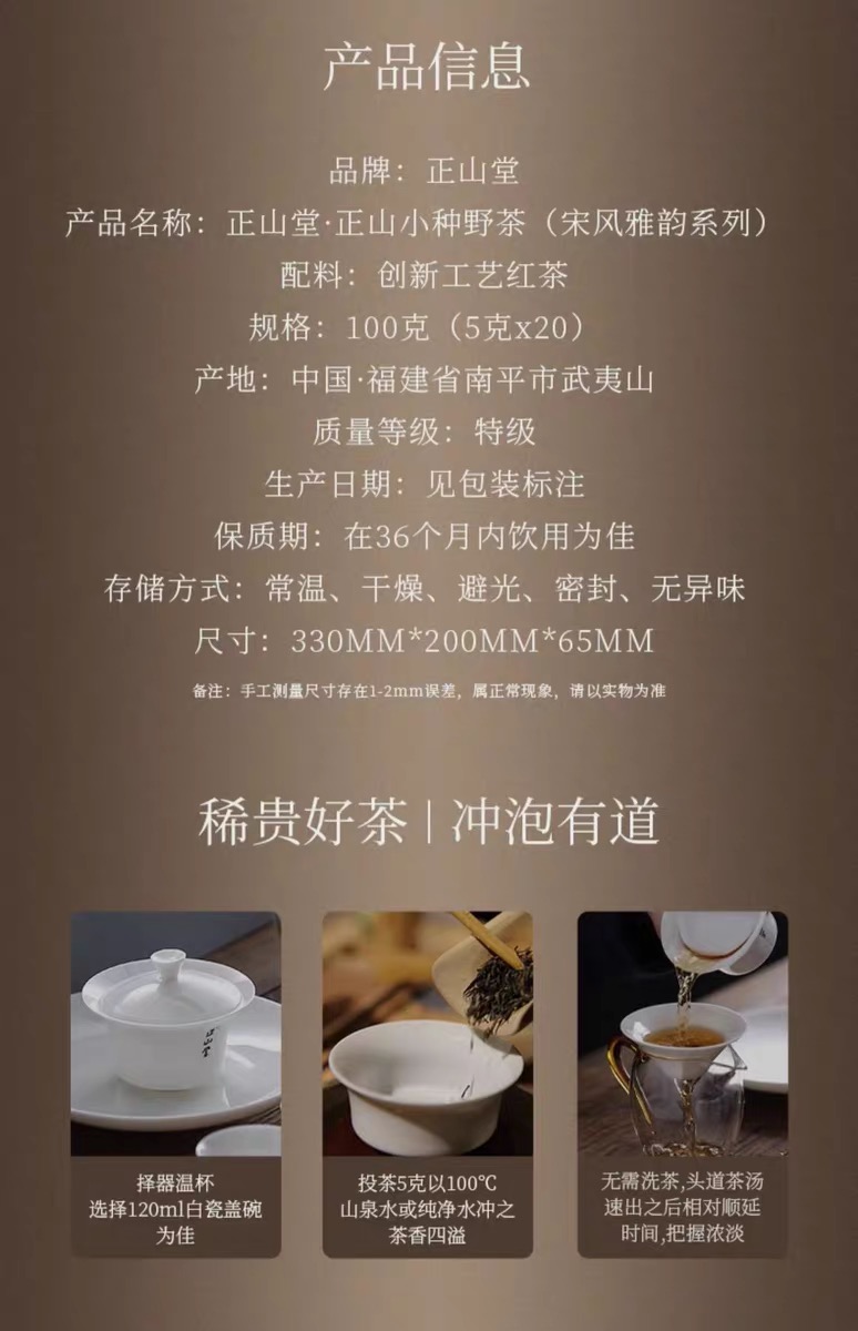 【正山堂正山小种野茶礼盒】特级红茶/宋风雅韵/礼盒装/100g