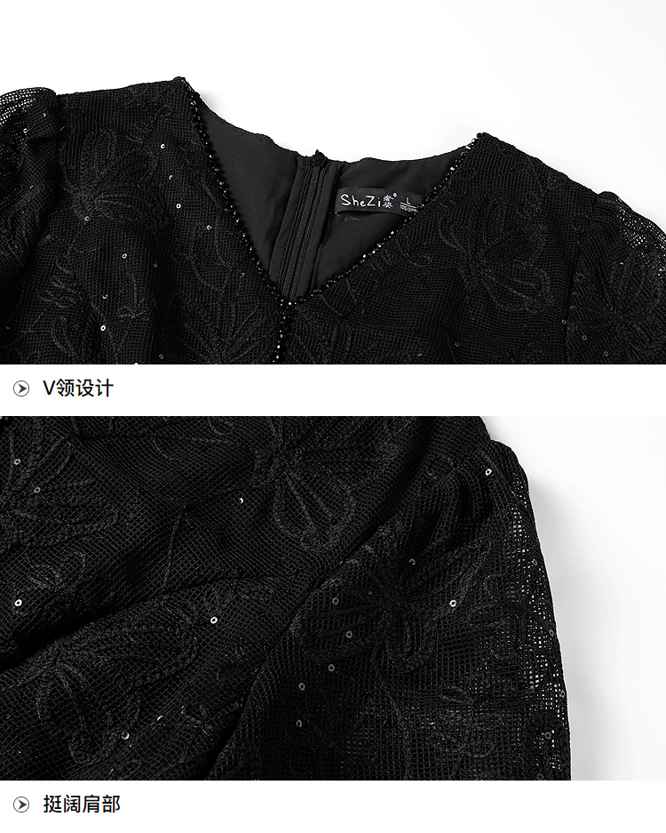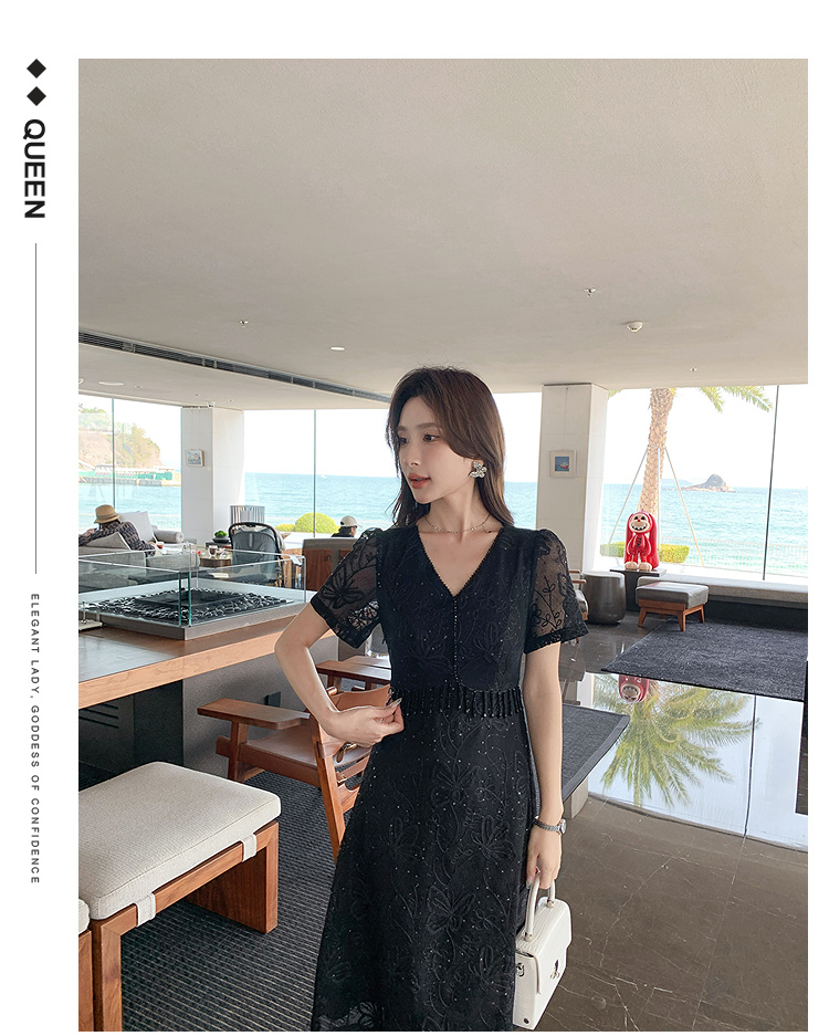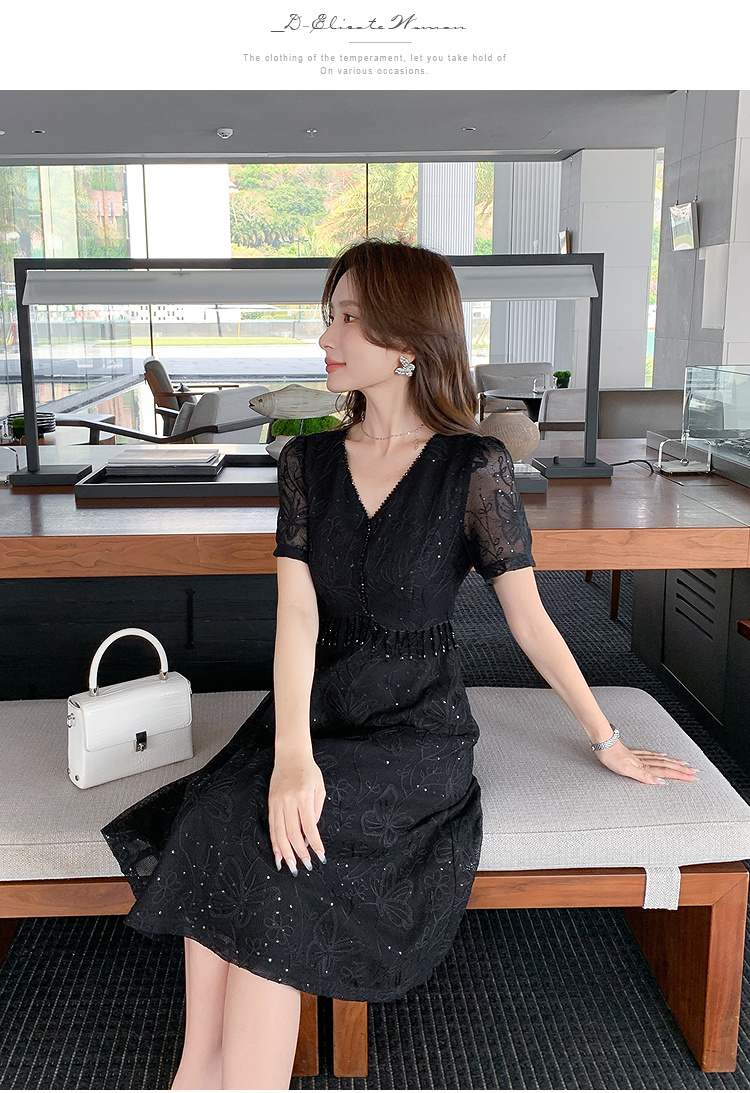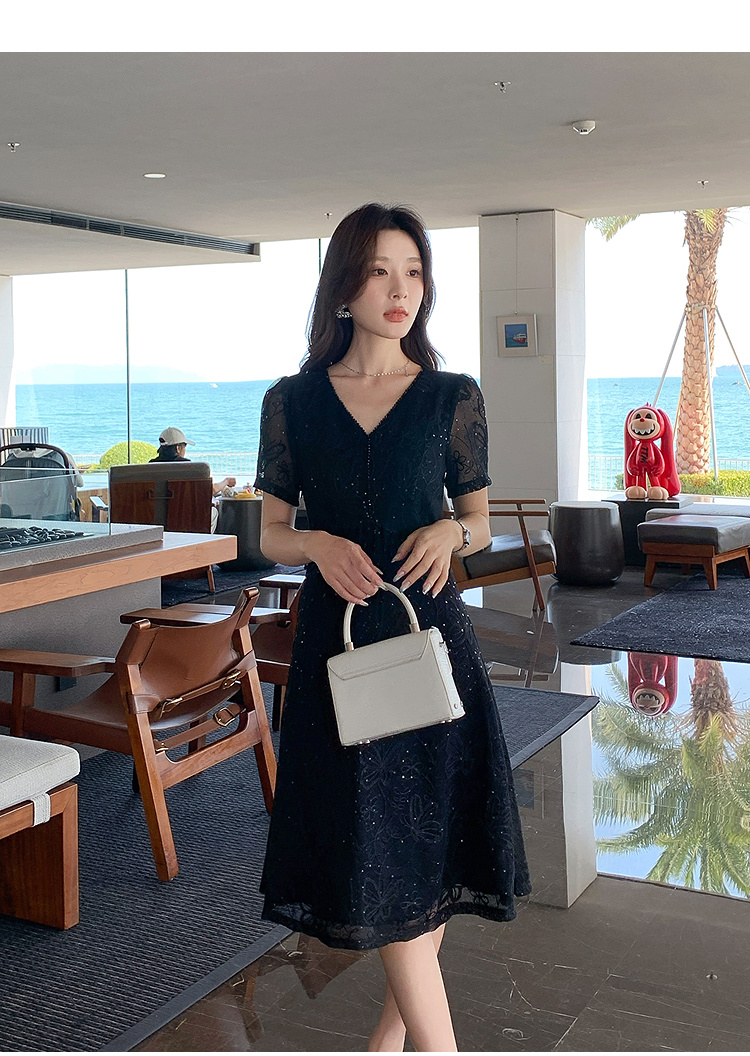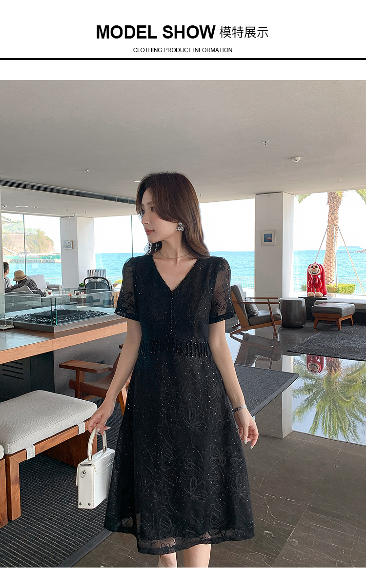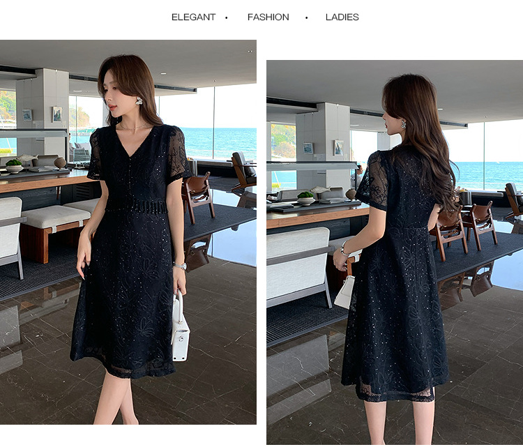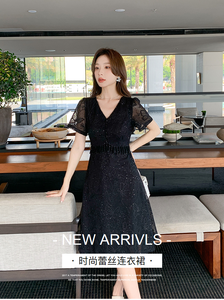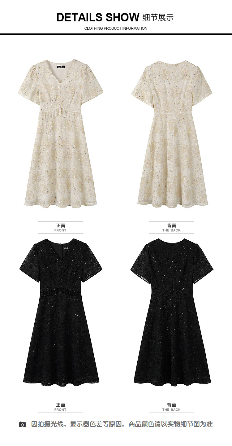 奢姿大码女装2025夏季时尚v领短袖连衣裙胖妹妹气质减龄蕾丝裙子9952853167