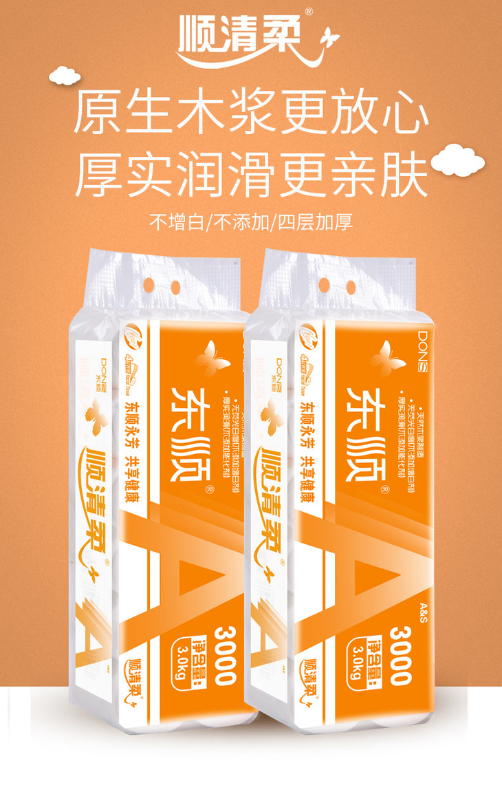 顺清柔卷纸12卷3000克橙色包装(仅供济南市区)(新老包装随机发)