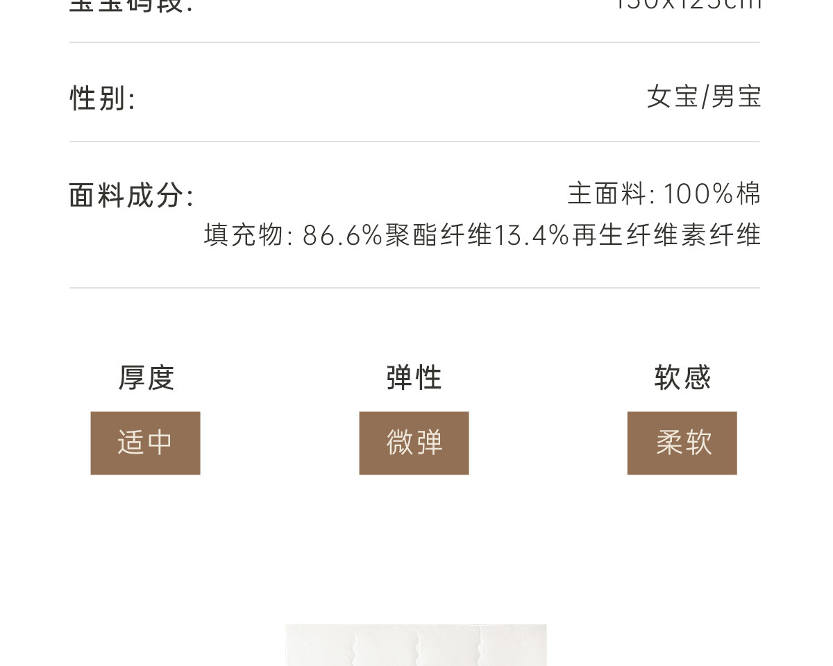 英氏婴幼儿恒温薄被芯宝宝保暖全棉被子四季通用YEBXJ0P001A