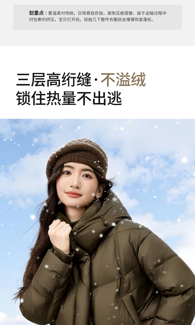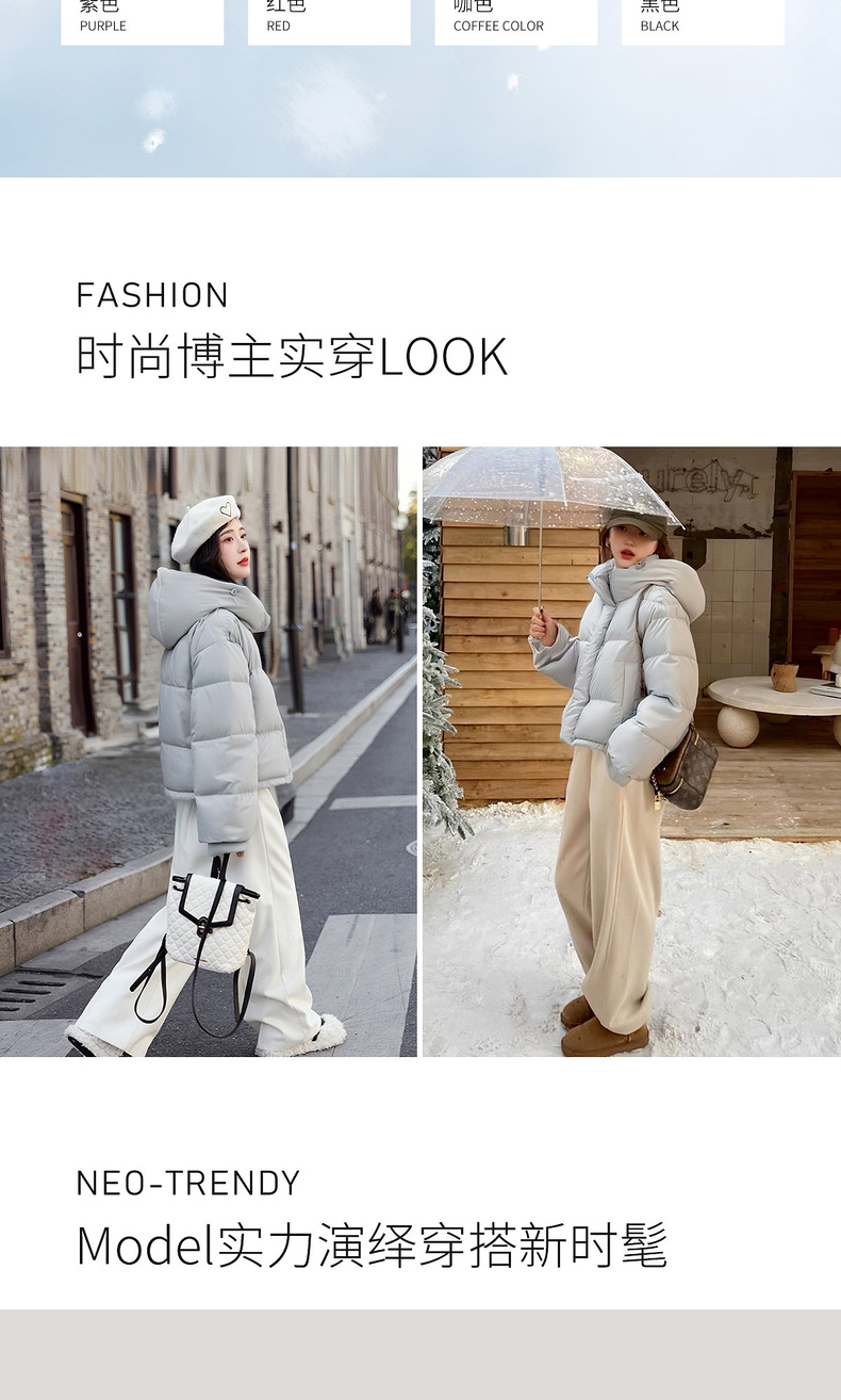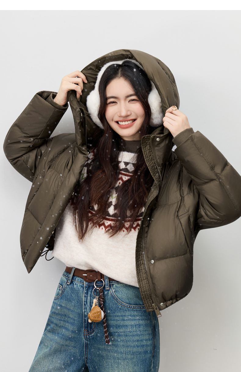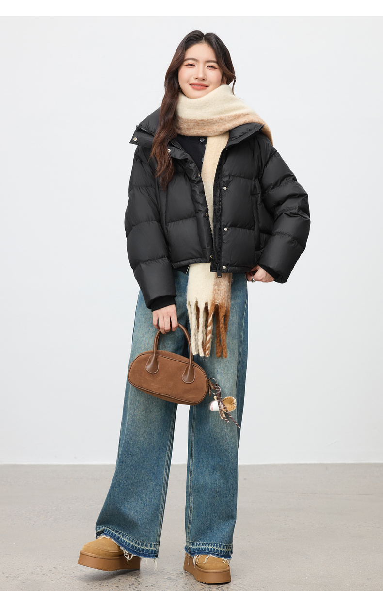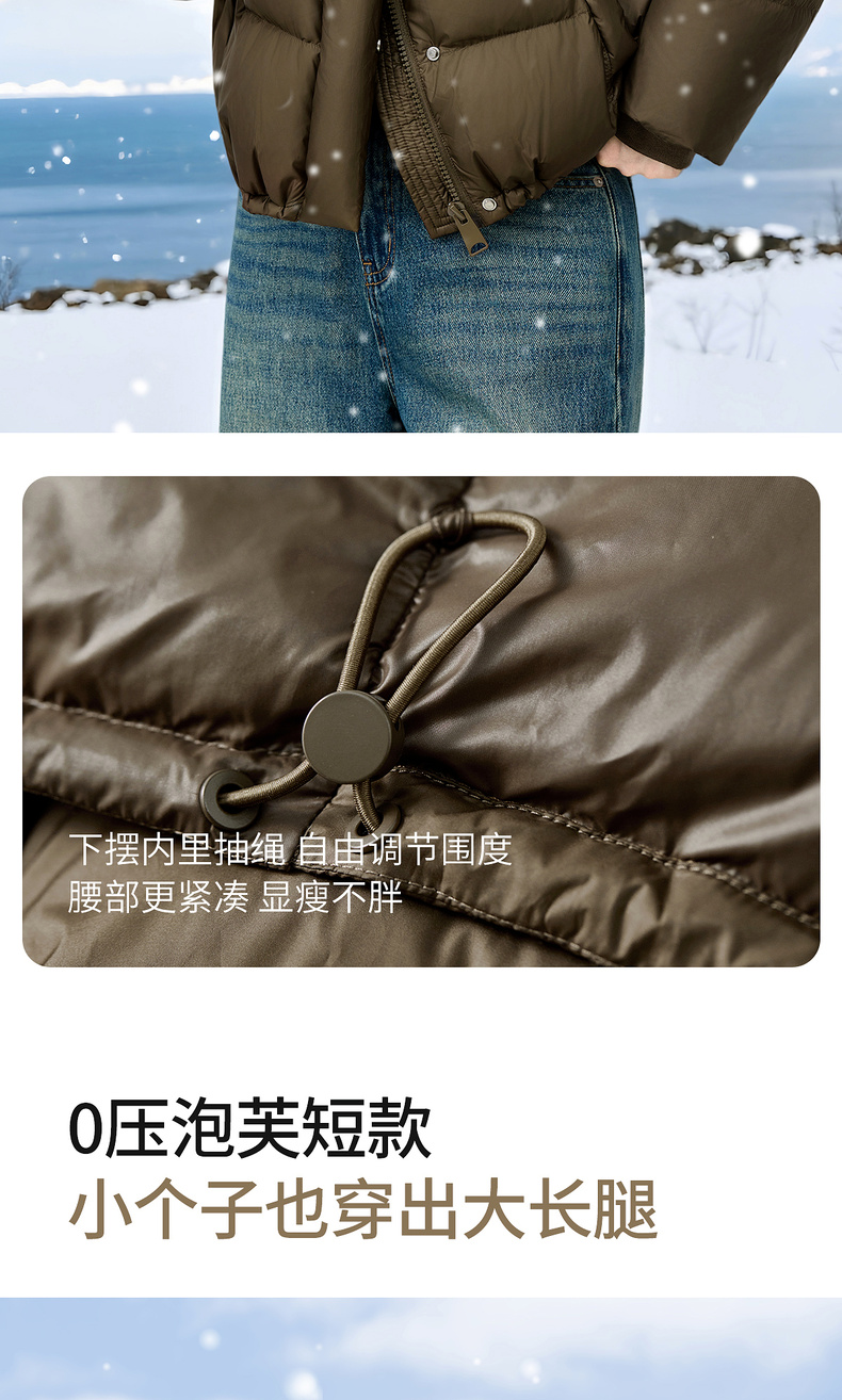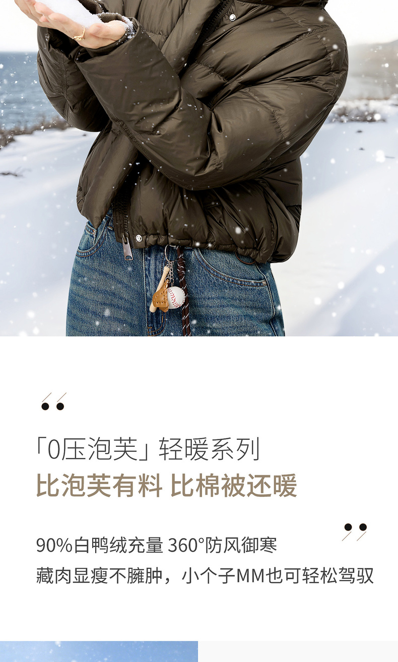 【内购】泡芙90白鸭绒羽绒服外套女2024冬装新款小个子短款面包服-W54YC1771X